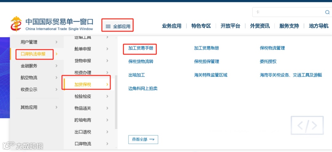 2、操作途径为中国国际贸易“单一窗口”(口岸执法申报-加贸保税-加工贸易手册)窗口提交。