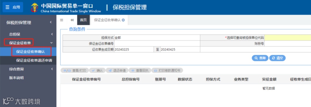 - 海关终审通过后,若需缴纳保证金,应在“保税担保管理”中确认信息并完成缴纳;