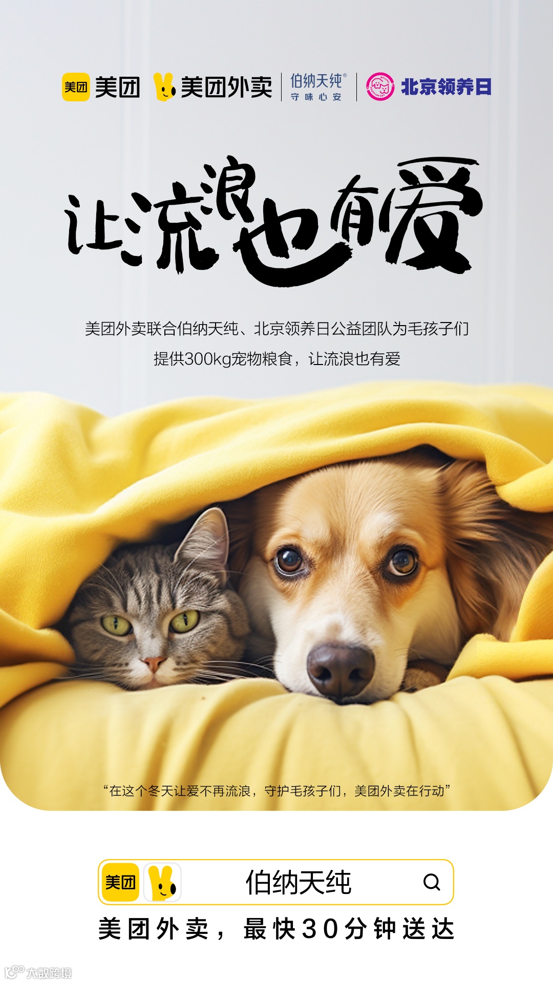 爱宠物也爱流浪动物,美团联手伯纳天纯、北京领养日推行公益活动