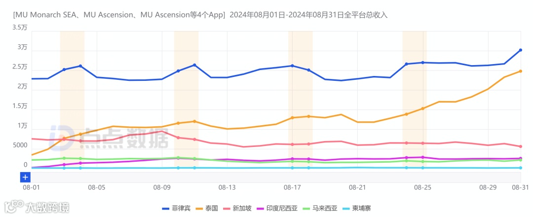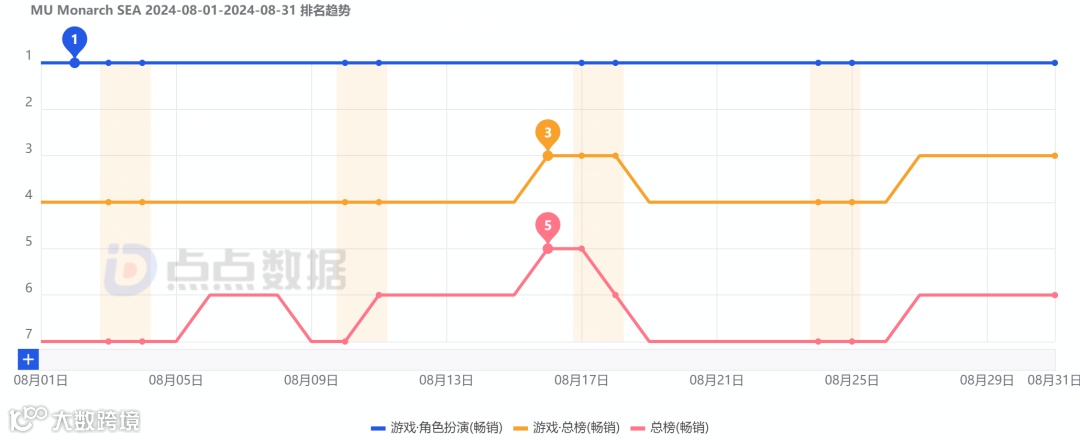 点点数据显示,《MU Monarch SEA》(计算《MU Ascension》数据)八月在东南亚地区取得超过48万的下载量。预估收入超过149万美元。