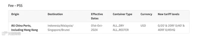 9月20日,马士基发布公告称,将从10月1日起,取消从中国所有港口至印度尼西亚、马来西亚、新加坡、文莱的旺季附加费 (PSS),涉及干箱和冷藏箱。