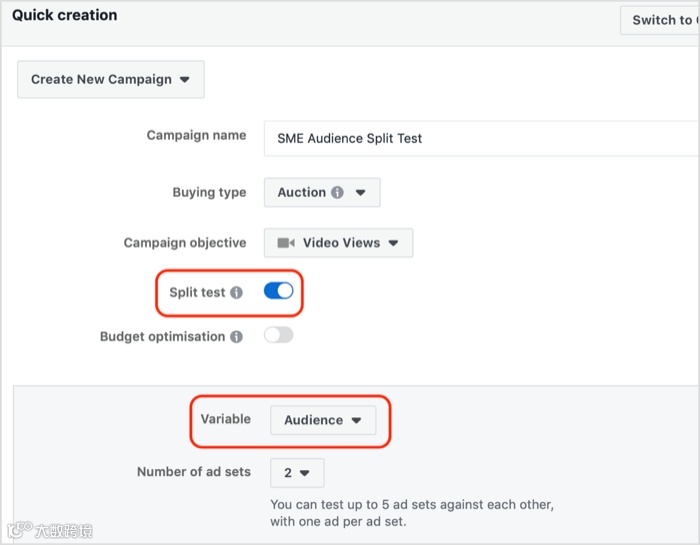 想要提高CTR,可以对付费的Facebook广告系列进行分组测试。Facebook广告管理工具中的此选项可以编辑广告系列的不同部分(如标题,文案或视觉效果),来确定哪个变量会获得更好的点击率。