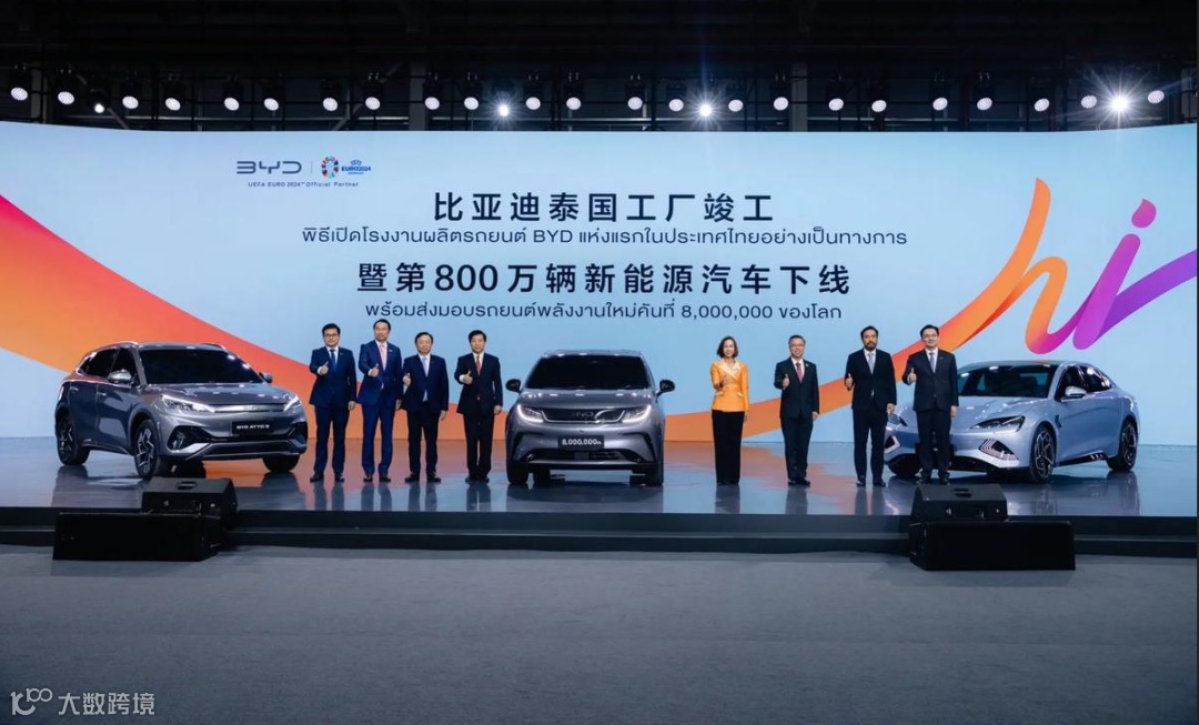 △ 2024年7月4日,比亚迪泰国罗勇府工厂全面竣工,第800万辆新能源汽车下线。