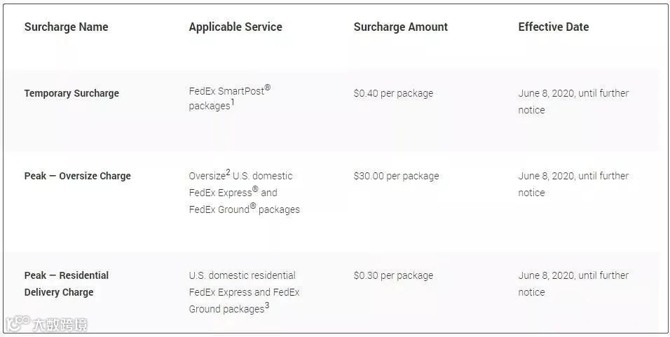 联邦快递将从2020年6月8日开始实施三项高峰时期临时附加费: