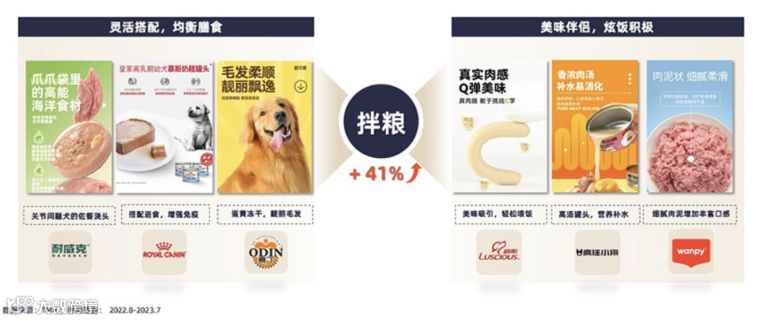另一方面,针对狗狗挑食,不爱喝水等特性,犬零食在形态上更适合拌粮,从而平衡主粮的健康度与适口性,增强狗狗的饮食体验。