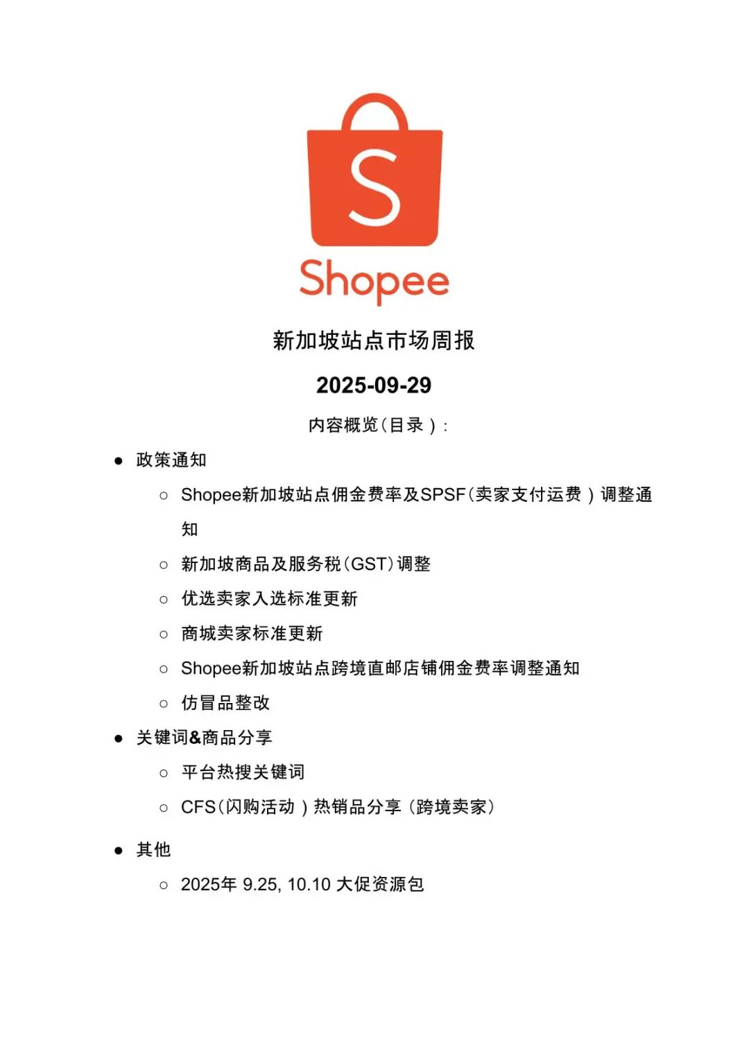 导读:【Shopee市场周报】虾皮新加坡站2025年10月第1周市场周报