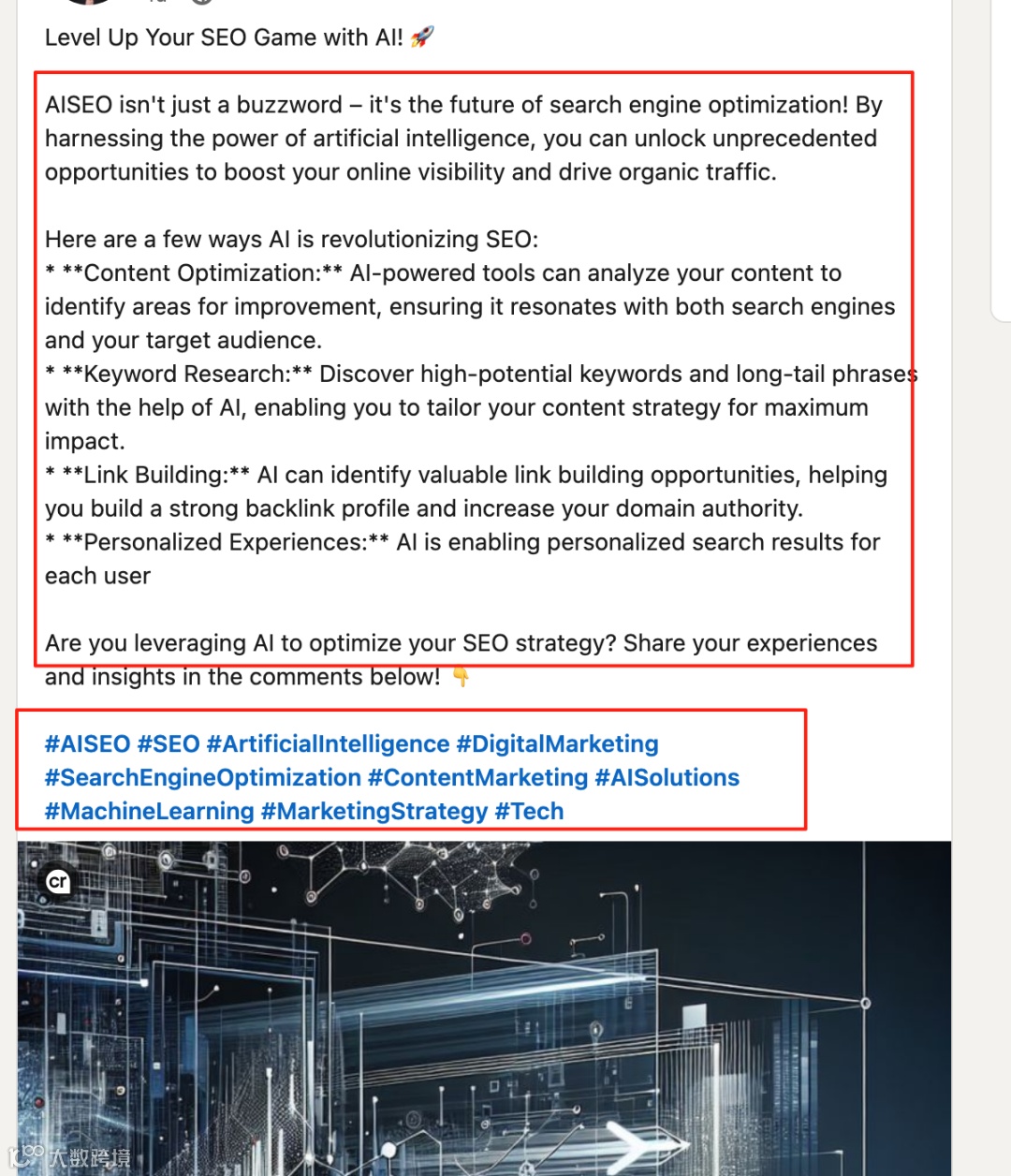 例如通过N8N+ChatGPT批量生产LinkedIn文案,并自动生成Hashtag和配图,大幅提升效率。