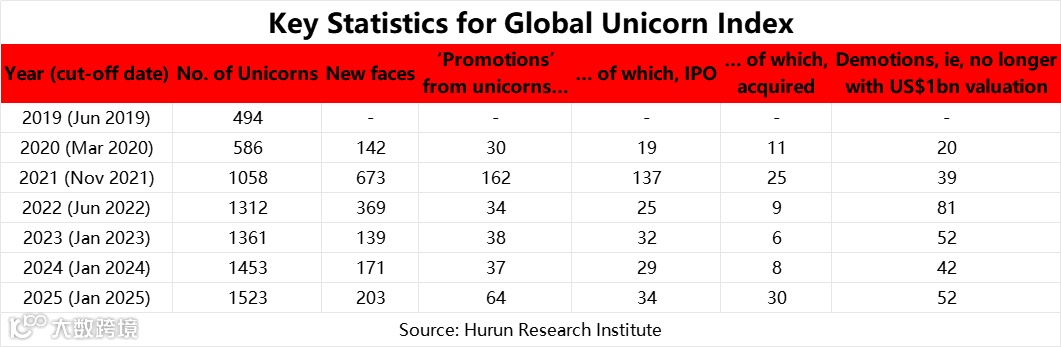若某家企业实现IPO或被并购,将从独角兽榜单中移除;若估值跌破十亿美元,也会被降级剔除。