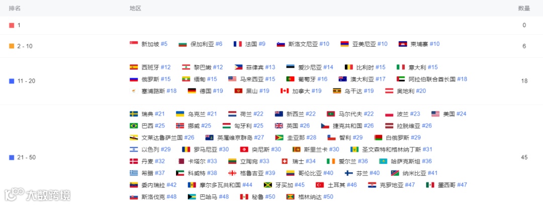 《剑与远征:启程》iOS游戏畅销榜TOP50国家分布