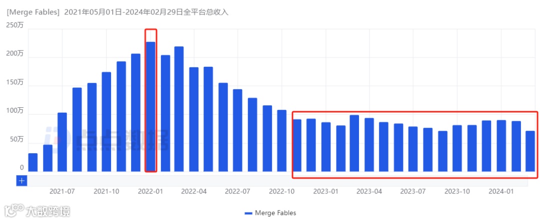 此外投放方面,《Merge Fables》上线初期便开始投放,持续至2022年2月底后,整体量级开始迅速下降,近一年投放基本处于停滞状态。如此看来,下载的变化与投放的即时性息息相关,流水则会在投放高峰之后存在一定时间的延缓效应。