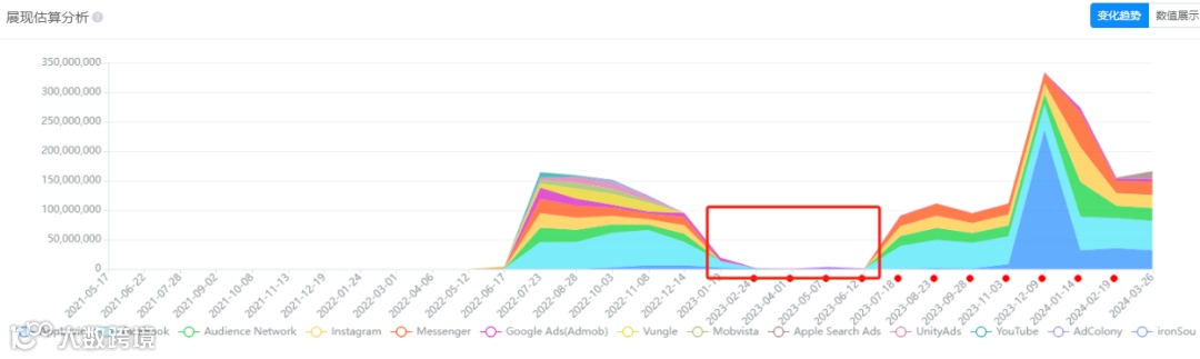 上线至今,投放的冷却期主要出现在去年的1月到6月,其他时间一直维持着正常投放。
