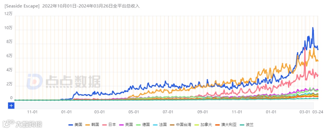 截至目前,该作总流水为4.04亿元,美国(49.6%)、韩国(8.54%)、日本(7.65%)位列TOP3,其中2023年贡献了9770万的收入。