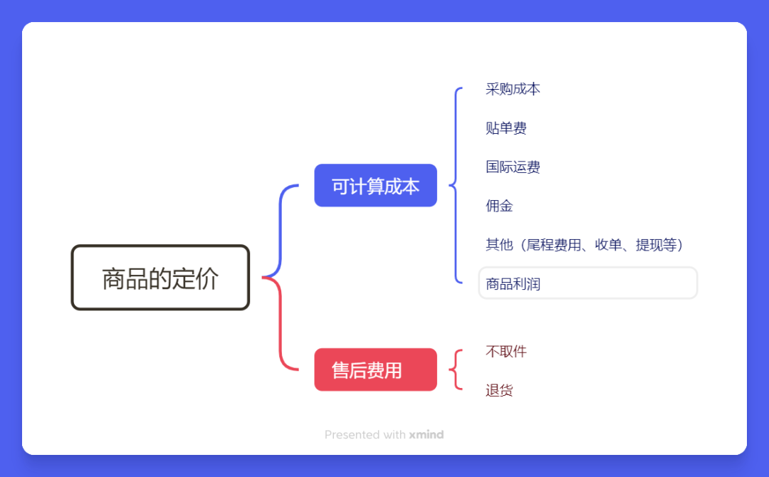 我们只需要根据定价,再扣除采购成本,贴单费、国际运费、佣金,收单、提现等费用之后,那剩下来了是不是我们的利润?