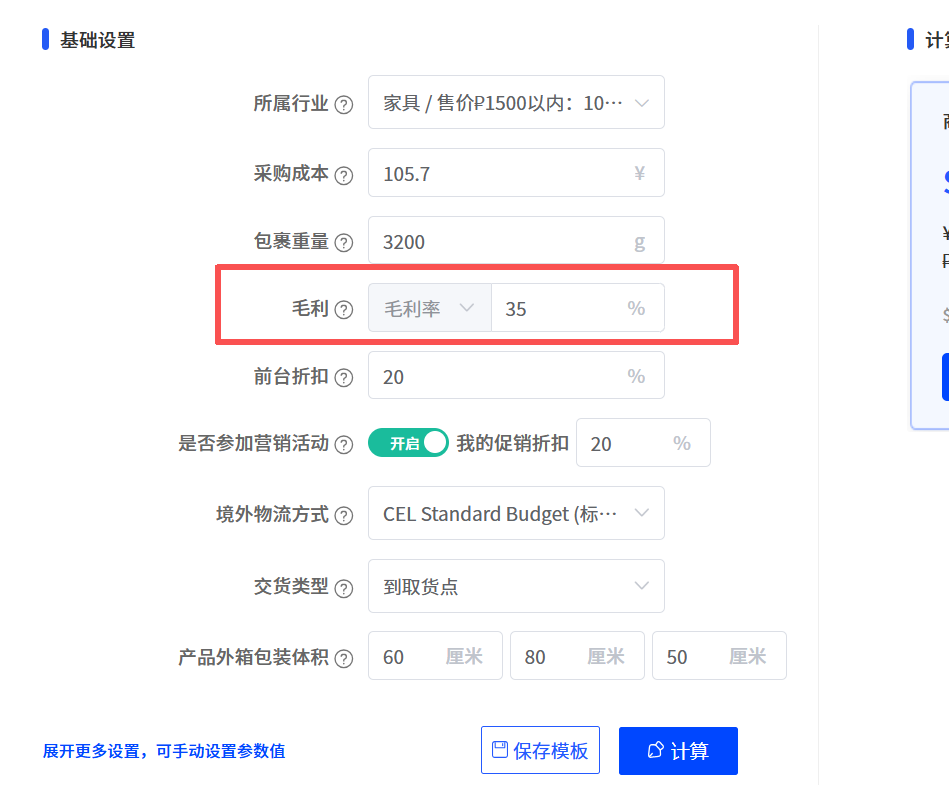 包含贴单费、收单费用、尾程费用,这里统一按5%算,有的商品并不一定含有收单和尾程费用,所以这个需要具体问题具体分析,贴单费通常为2-3元一单,这里咱们加到毛利率里面就可以了。