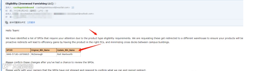 Q:我的是灯小物件我要求进去McDonough的仓库,在C3做了申请,C3确认了,但是今天就发了一封邮件,说产品资格要求我去。Port Wentworth这个仓库?是这样意思吗?请问这样子我是一定要改仓库吗?
