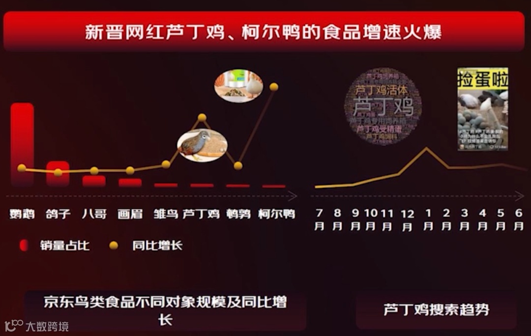小宠异宠市场高增,带来了新的需求变化。以新晋网红宠物芦丁鸡、柯尔鸭为例,其相关食品、用品增速十分可观。