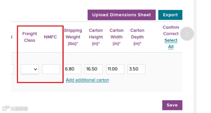 A:如果你的small parcel 不需要填写,如果你是large parcel 需要填写freight class(建议填100), 第二个不需要填。