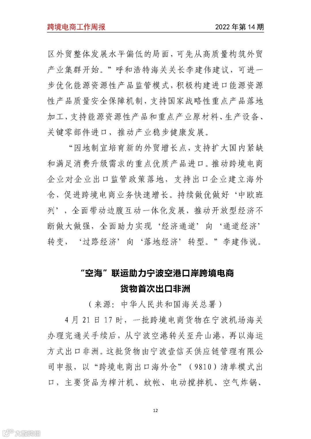 【跨境电商工作周报2022年第14期】