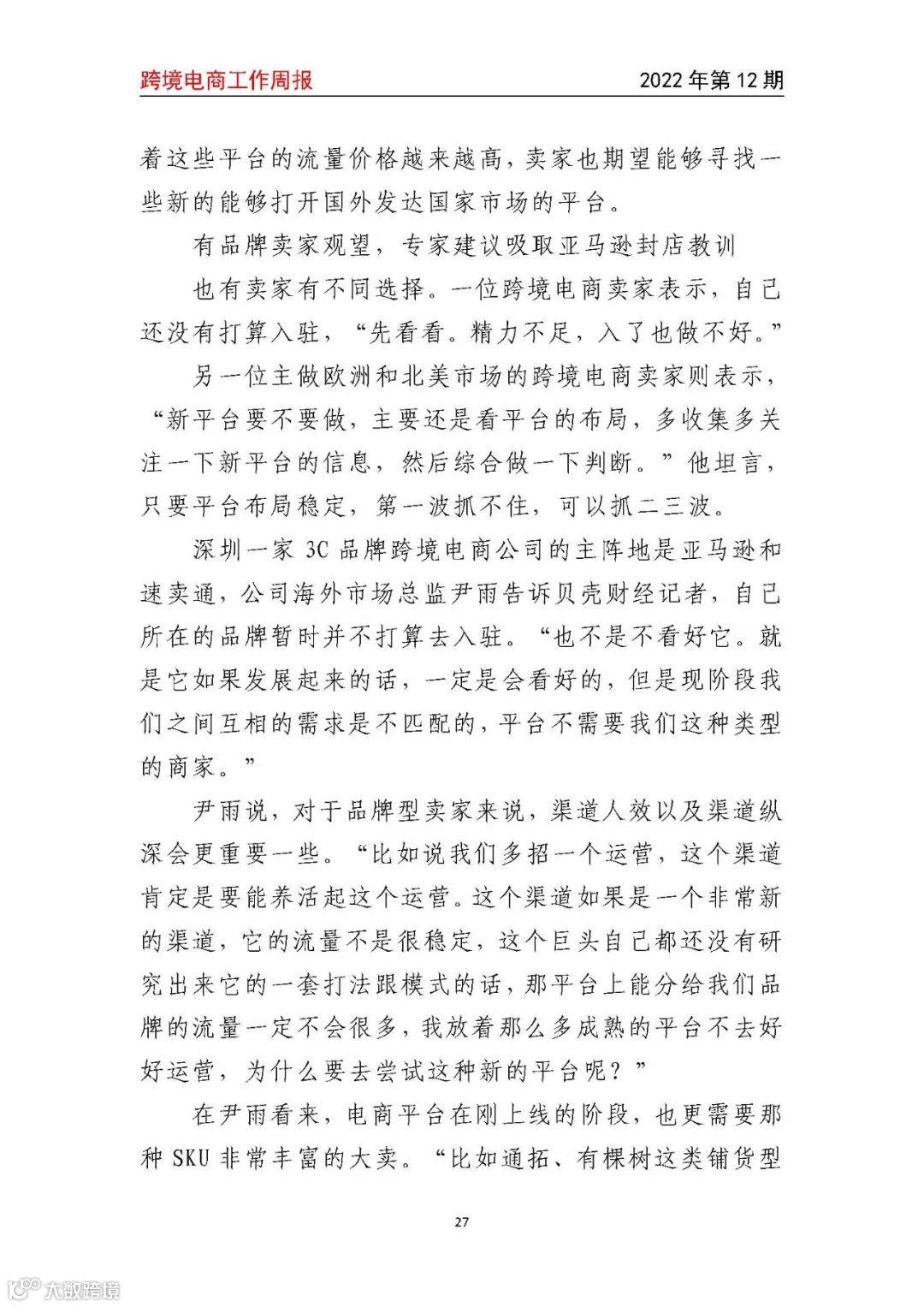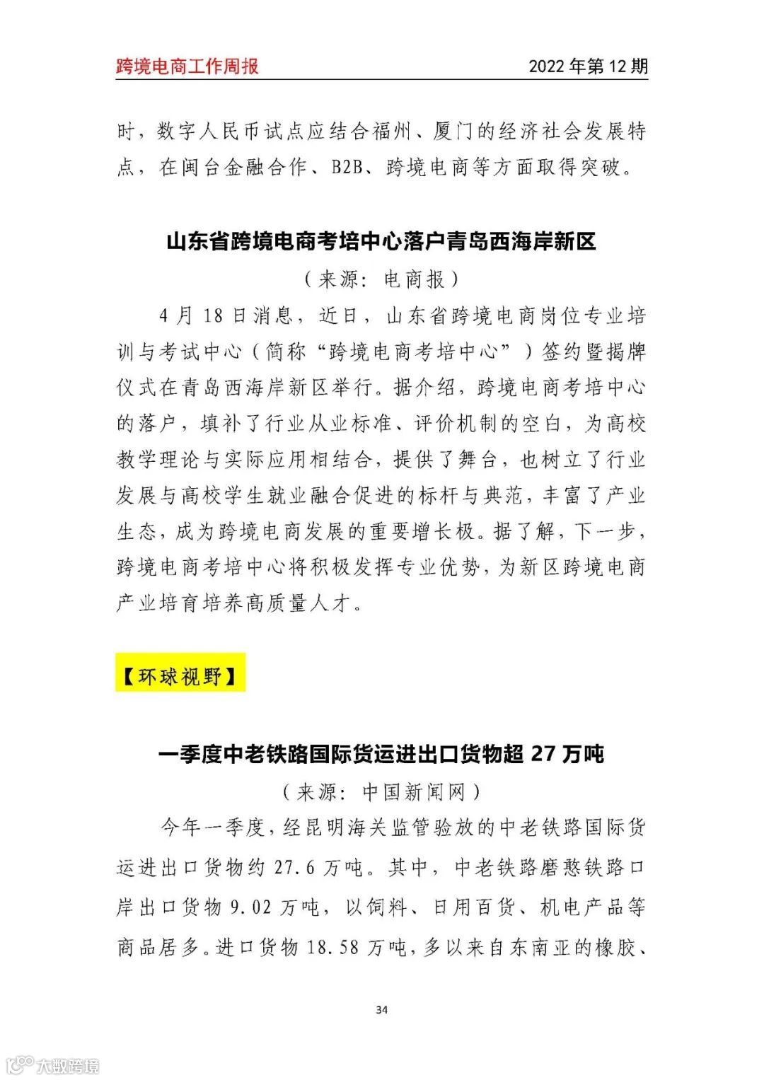 【跨境电商工作周报2022年第12期】