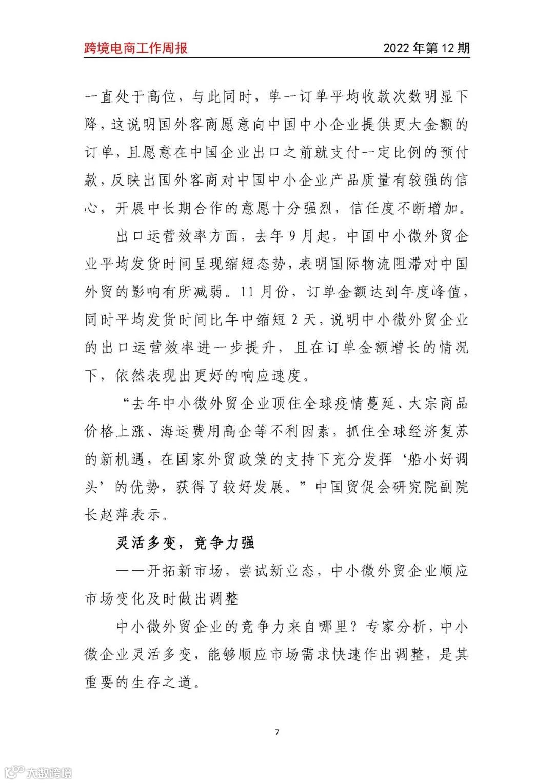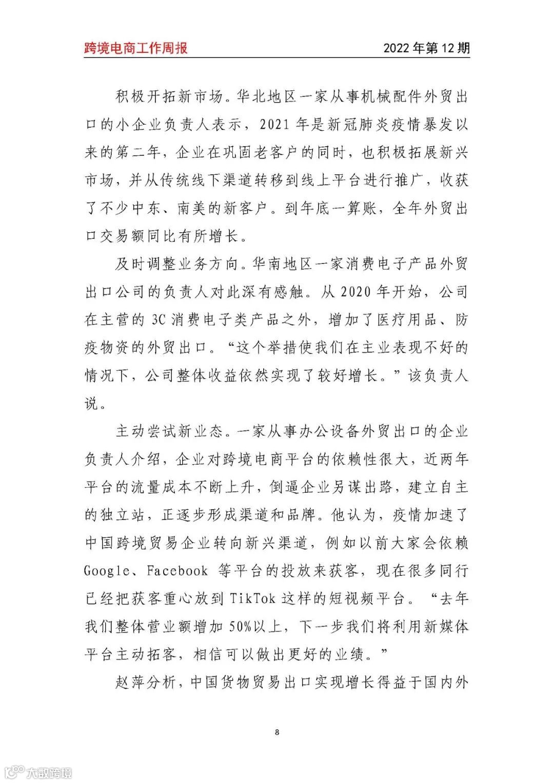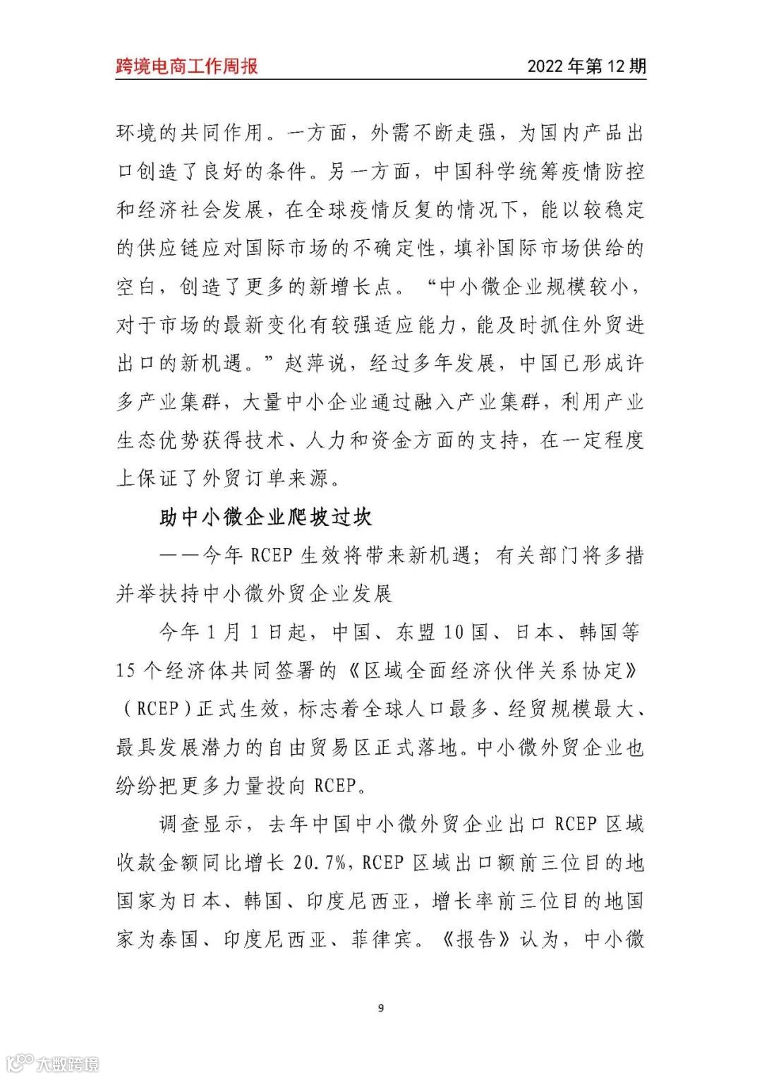 导读:【跨境电商周报2022年第12期】以“中小微”为主的民营外贸企业去年进出口总额增长26.7%