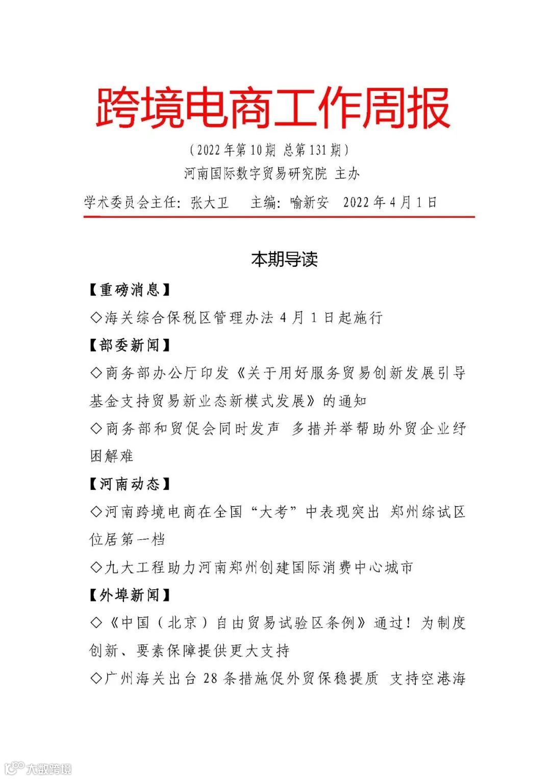 导读:【跨境电商周报2022年第10期】河南跨境电商在全国“大考”中表现突出 郑州综试区位居第一档