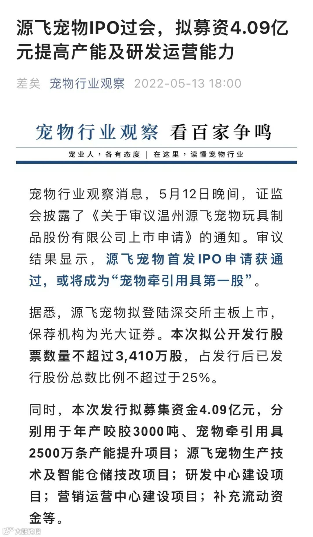 前两天,又一家来自浙江的宠物用品公司成功过会,把狗绳卖到全球的源飞宠物成为宠物公司上市潮的最新赢家。加上在2017年上市的佩蒂股份,此前已经成功过会的天元宠物,仅仅浙江省就将拥有3家宠物A股上市公司,成为宠物上市潮的最大赢家。加上上海和江苏已上市、待上市以及一级市场的融资品牌,长三角是中国宠物资本化浪潮当之无愧的引领者。