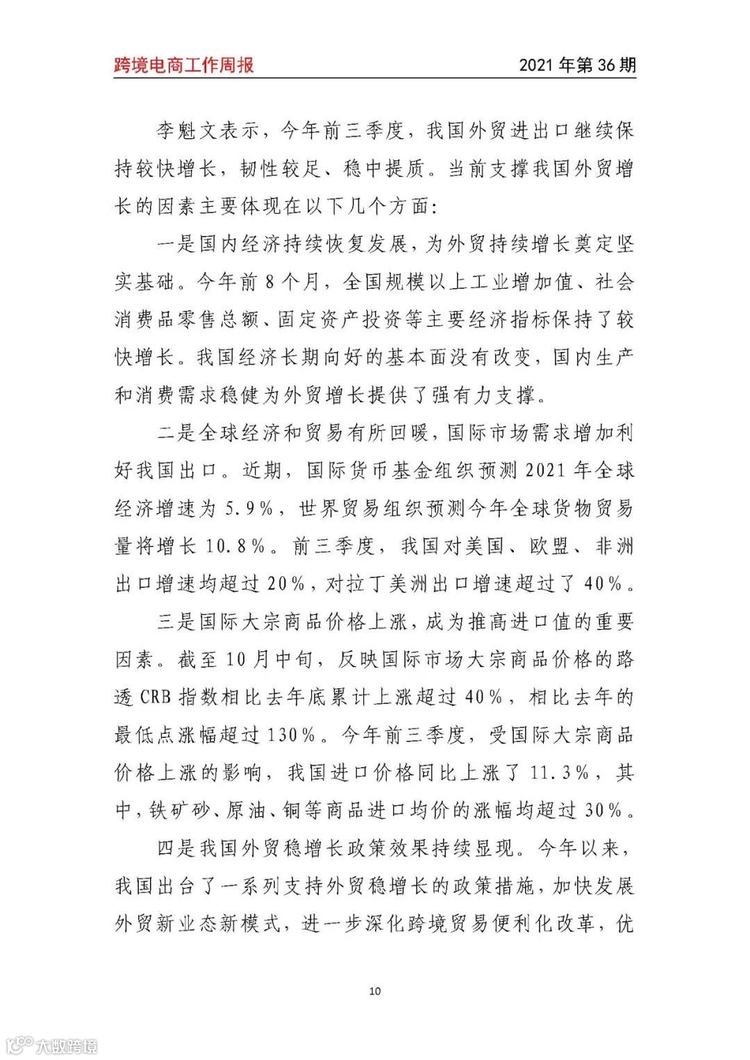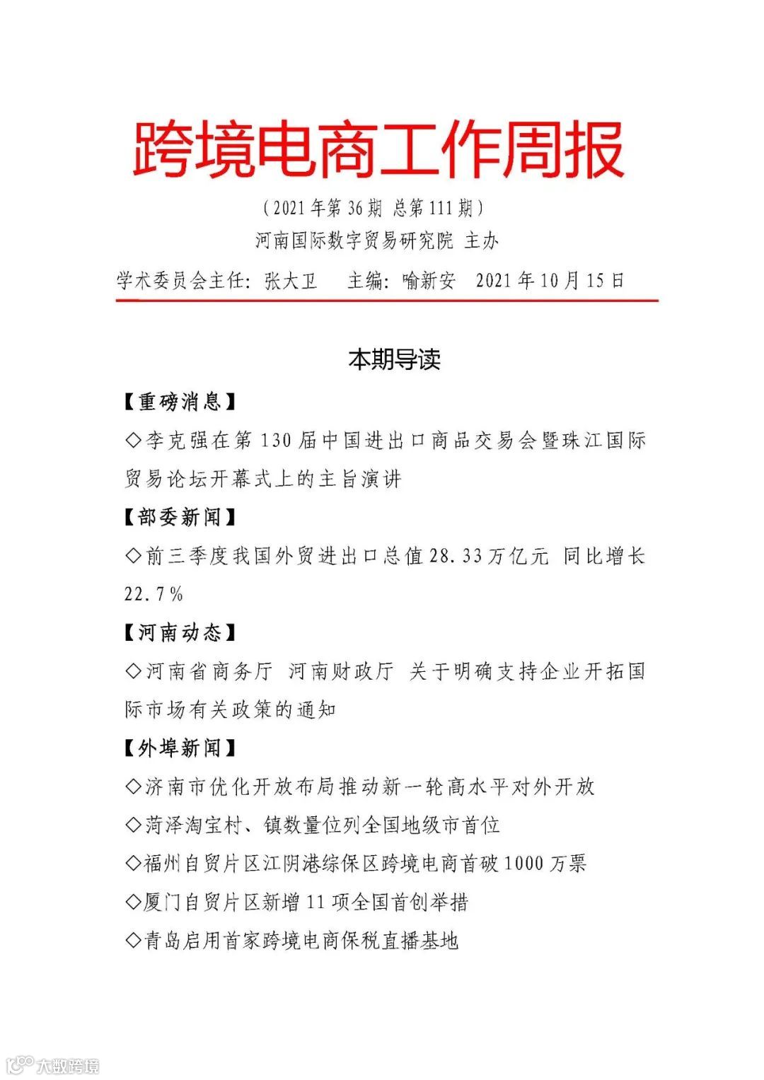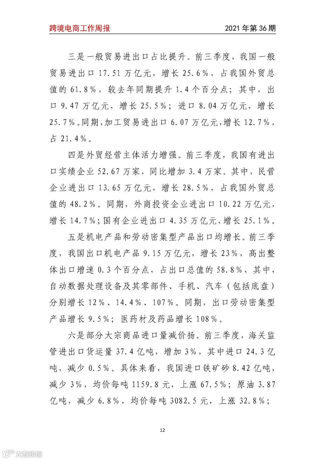 【跨境电商周报2021年第36期】前三季度我国外贸进出口总值28.33万亿元 同比增长22.7%