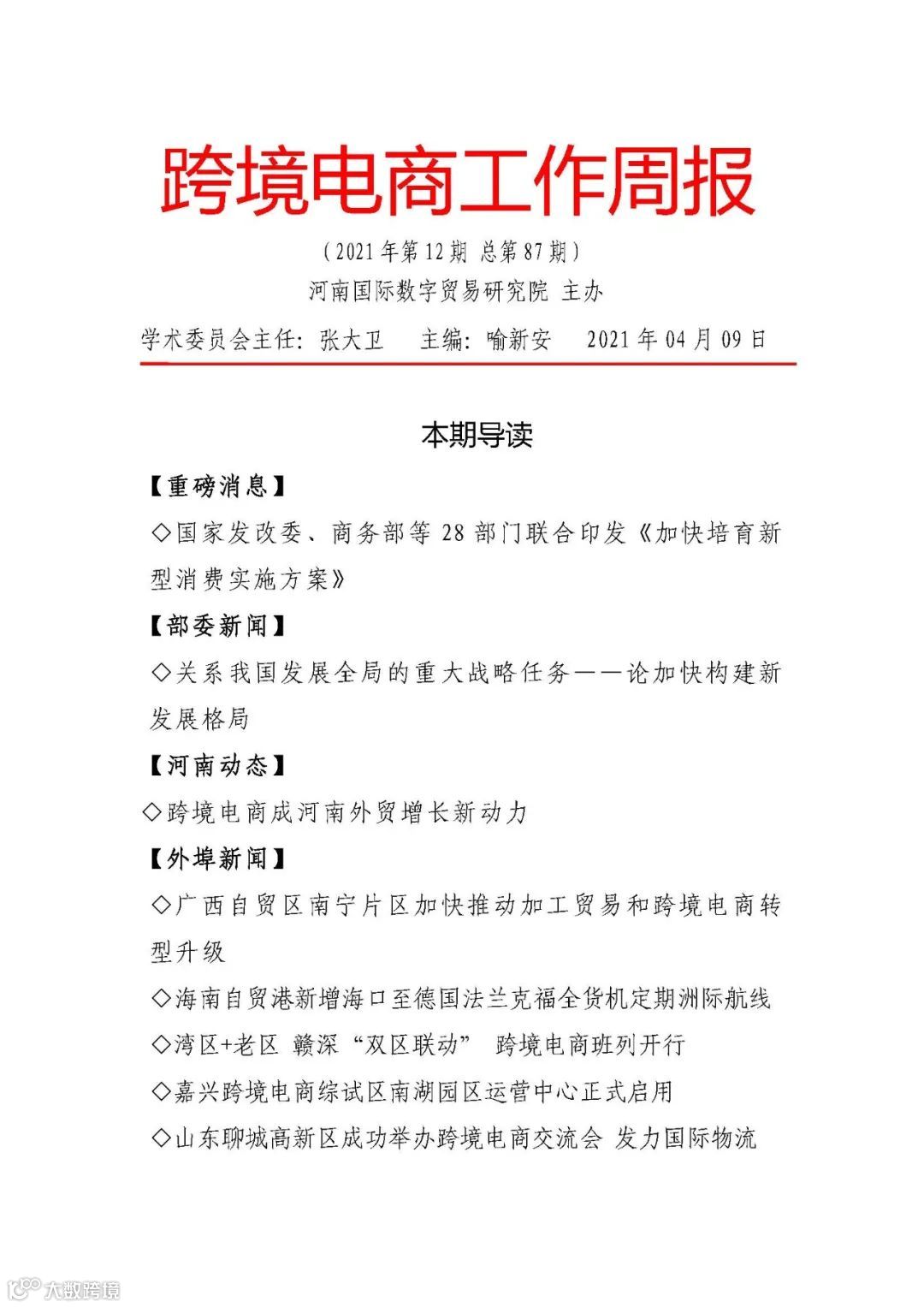 导读:【跨境电商周报2021年第12期】国家发改委、商务部等28部门联合印发《加快培育新型消费实施方案》