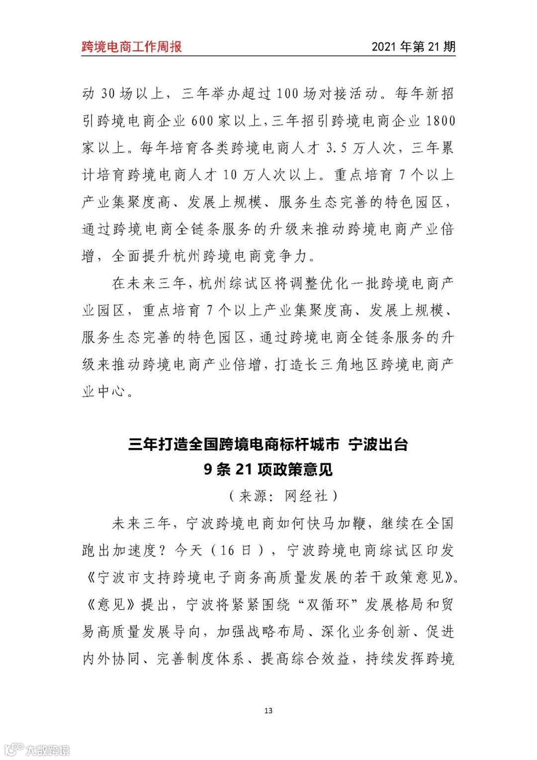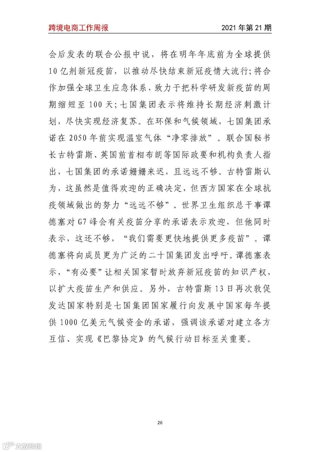 【跨境电商工作周报2021年第21期】