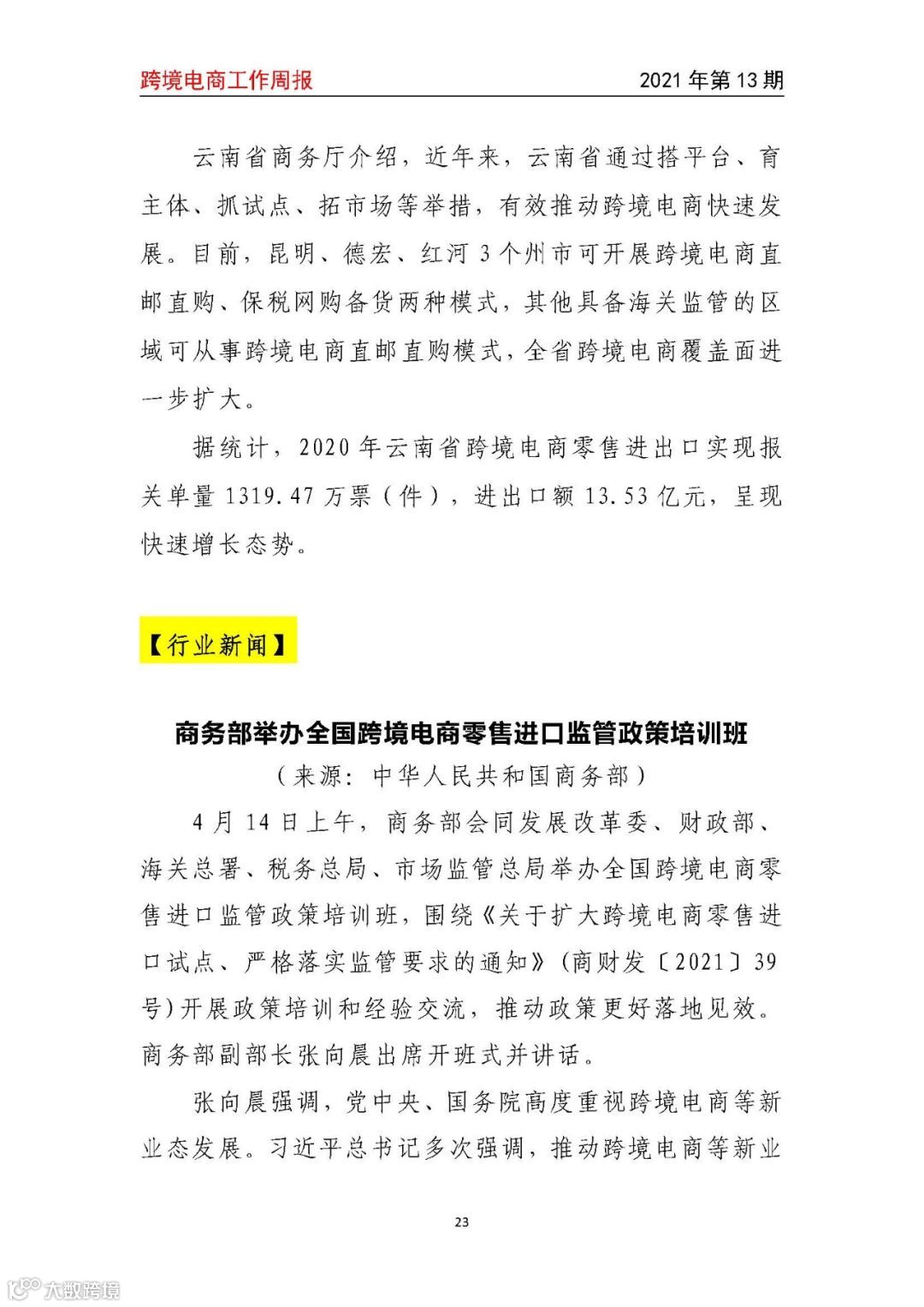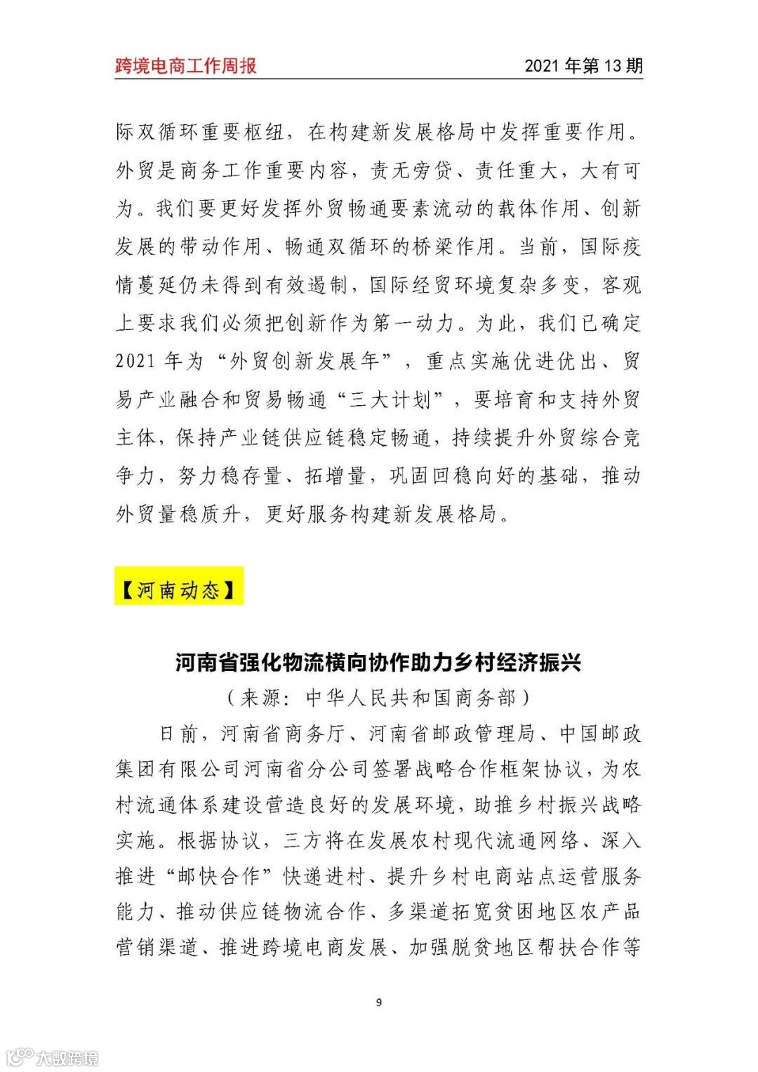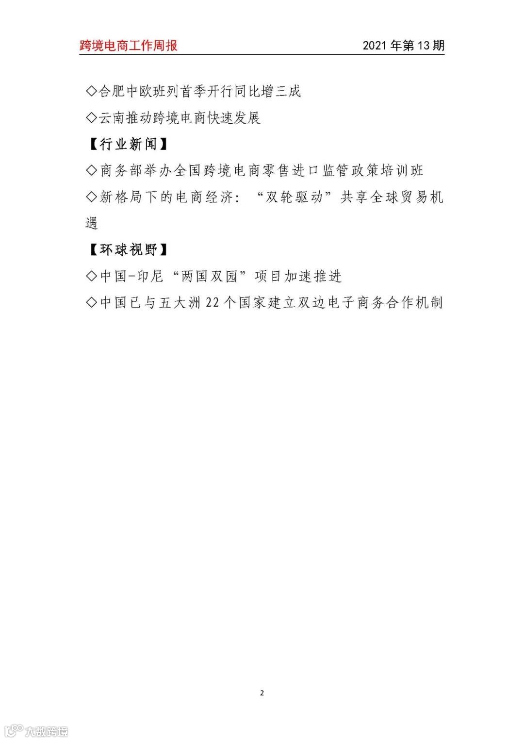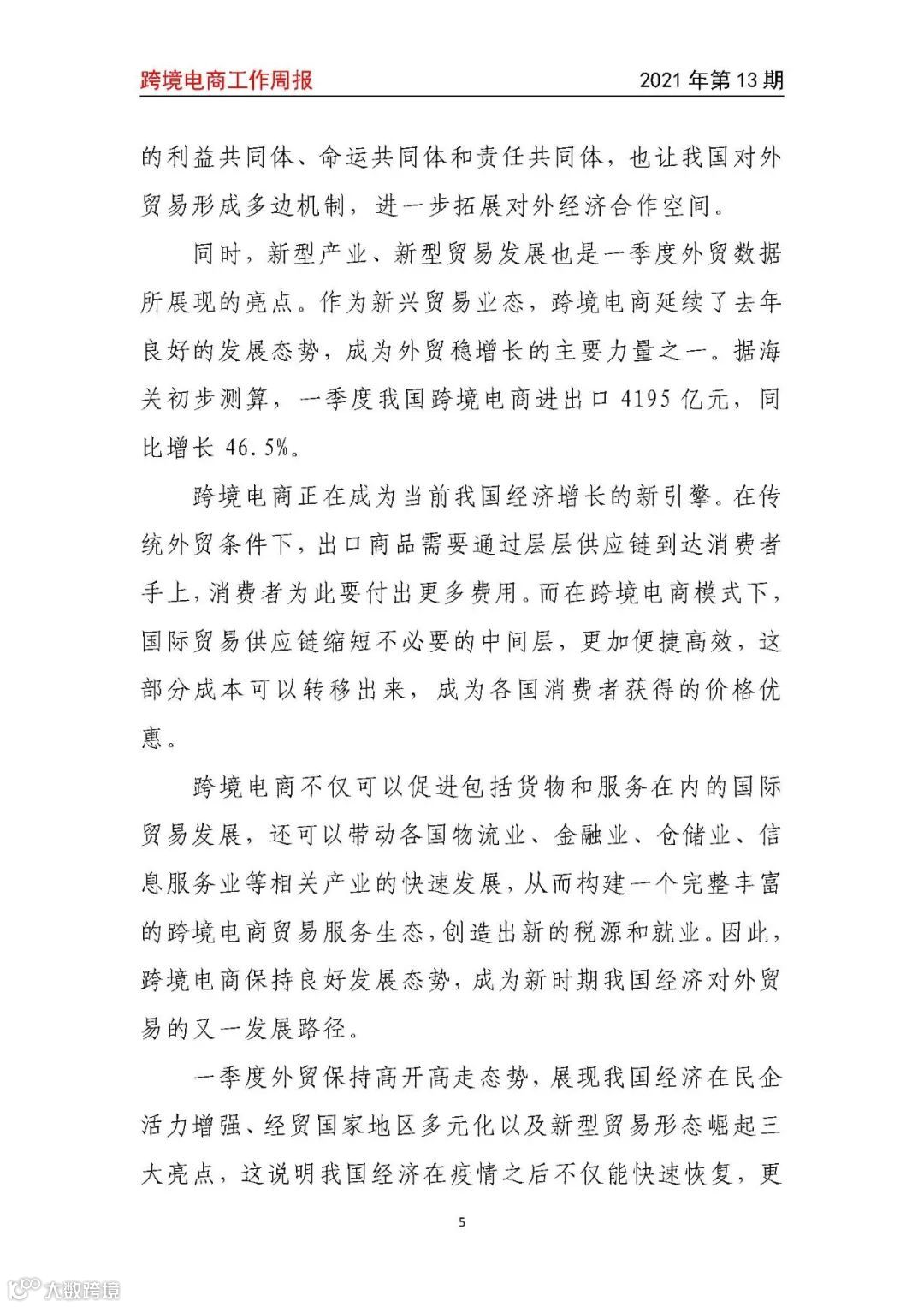 导读:【跨境电商周报2021年第13期】一季度外贸保持高开高走态势,展现我国经济三大亮点