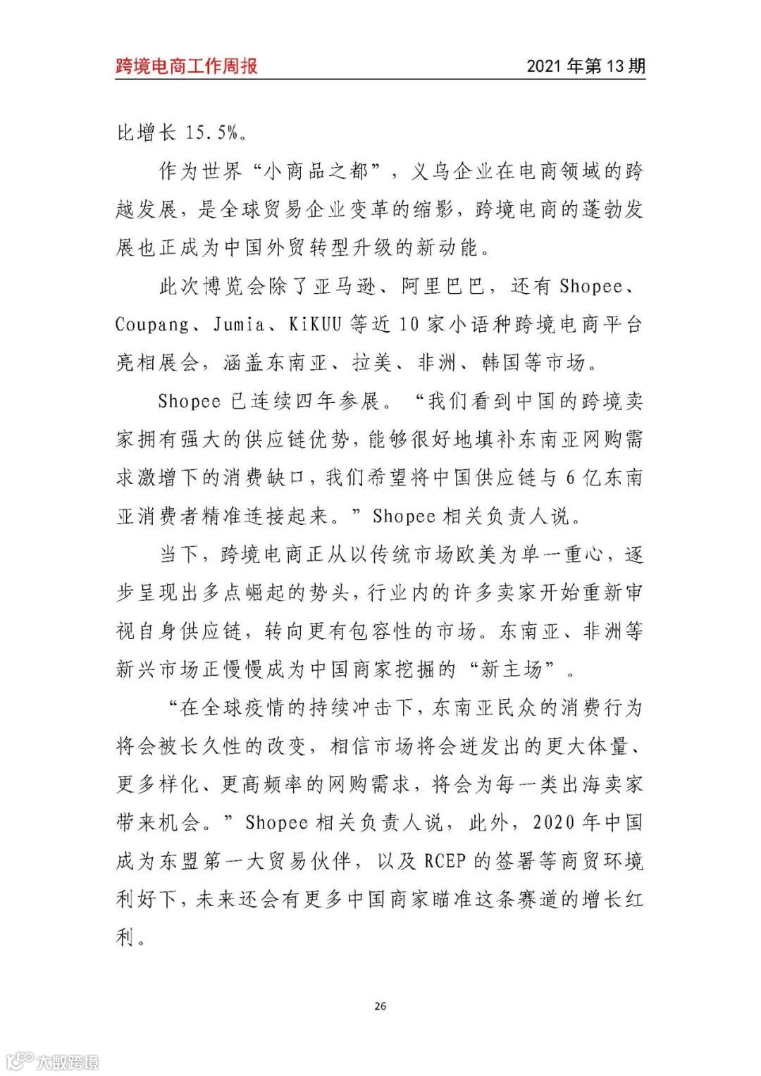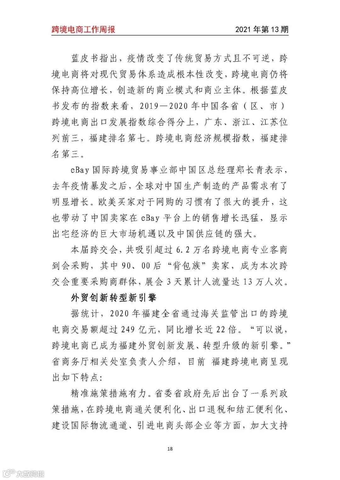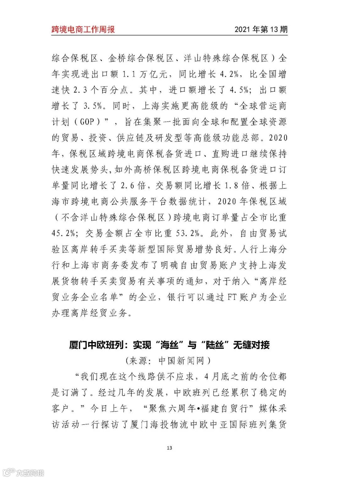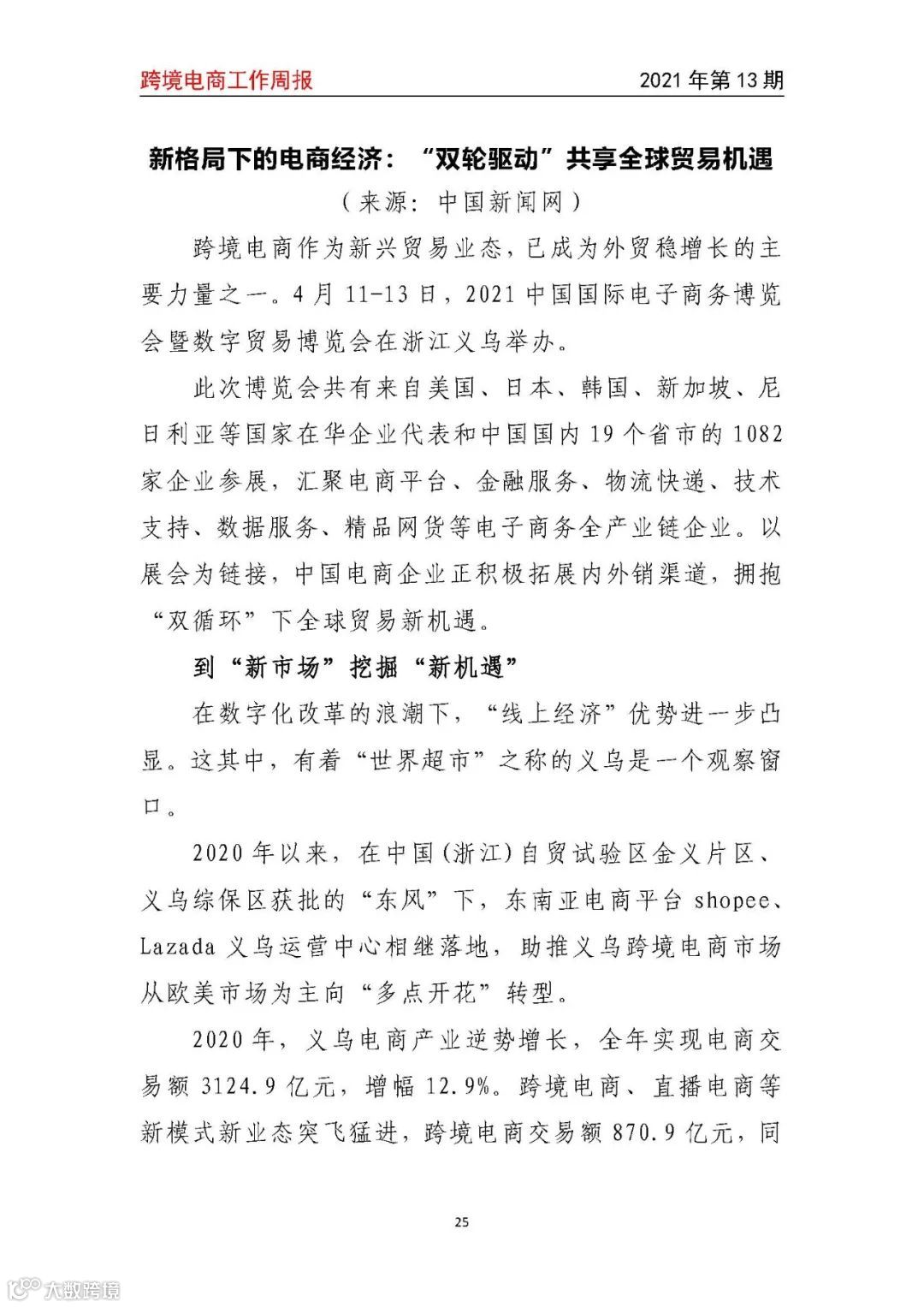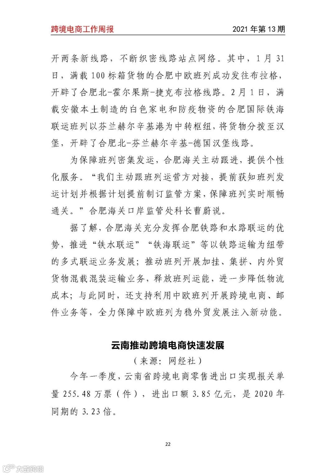 导读:【跨境电商周报2021年第13期】一季度外贸保持高开高走态势,展现我国经济三大亮点