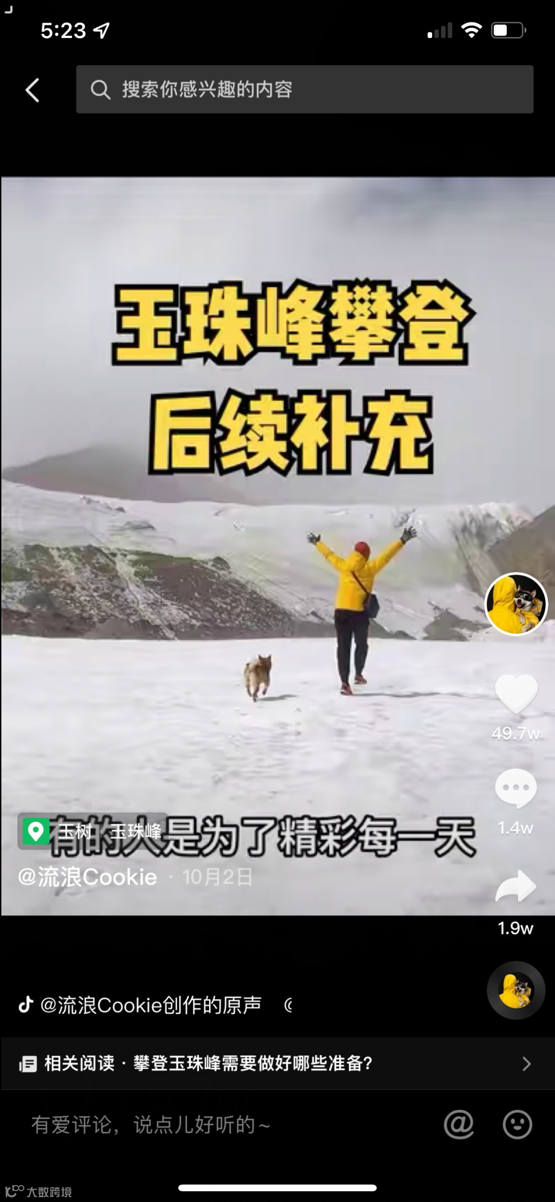 6、2021年9月22日,作者带Cookie攀登了海拔6000+的玉珠峰,并成功登顶;