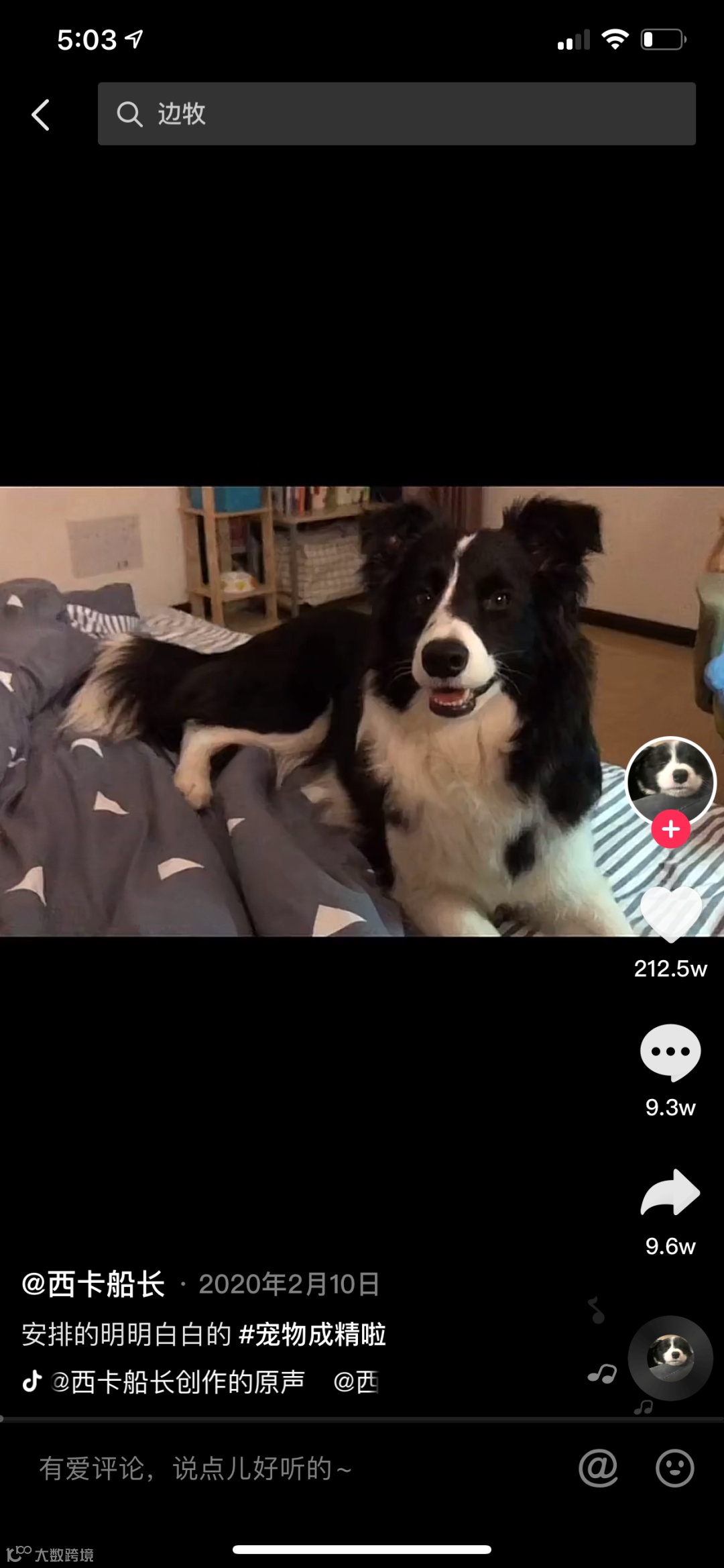 6、2021年2月23日,小帅家的大狼狗们发布视频合集《狗狗话题合集》,目前已更新11集,播放量达到了2.2亿;