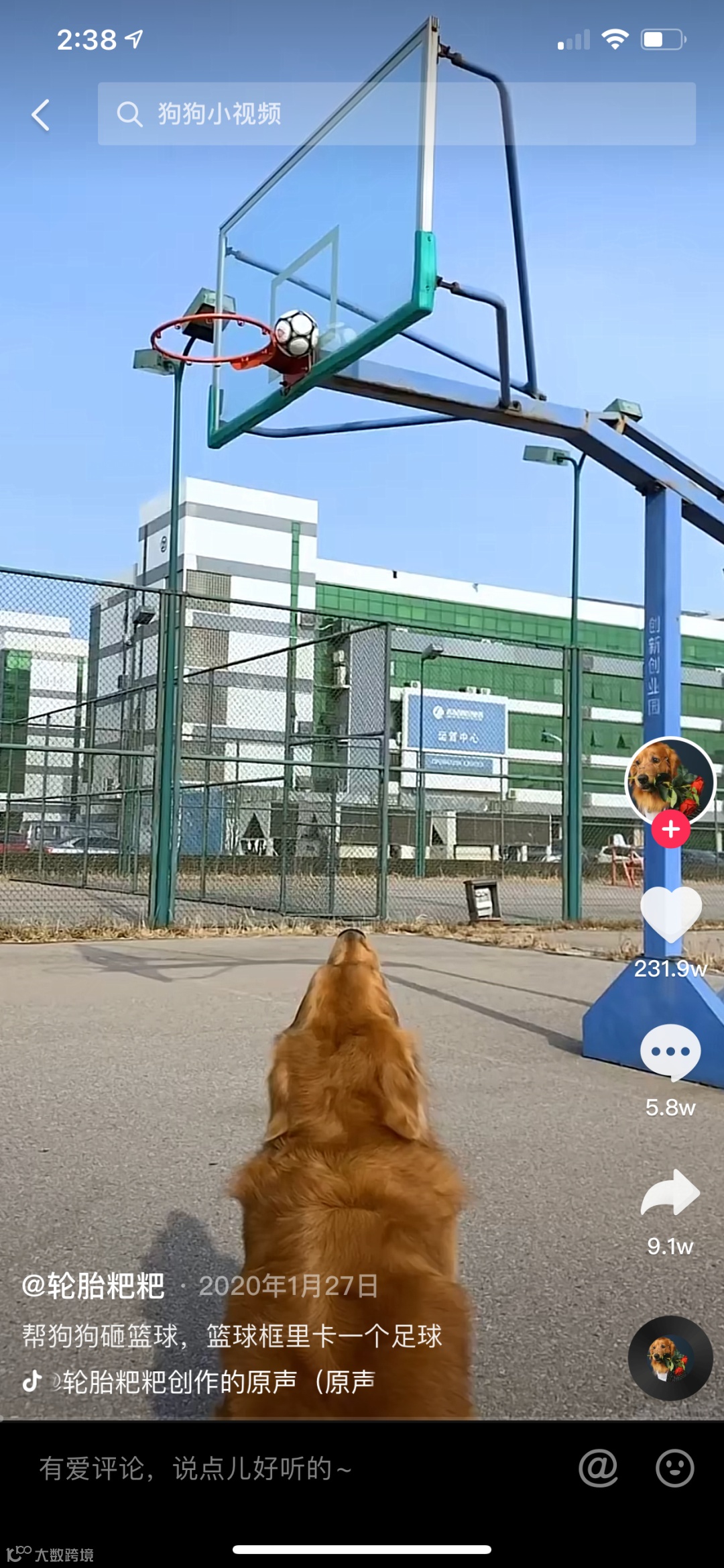1、2018年3月9日,轮胎粑粑发布自己第一个作品,视频中显示,轮胎是一只会骑自行车的金毛犬;