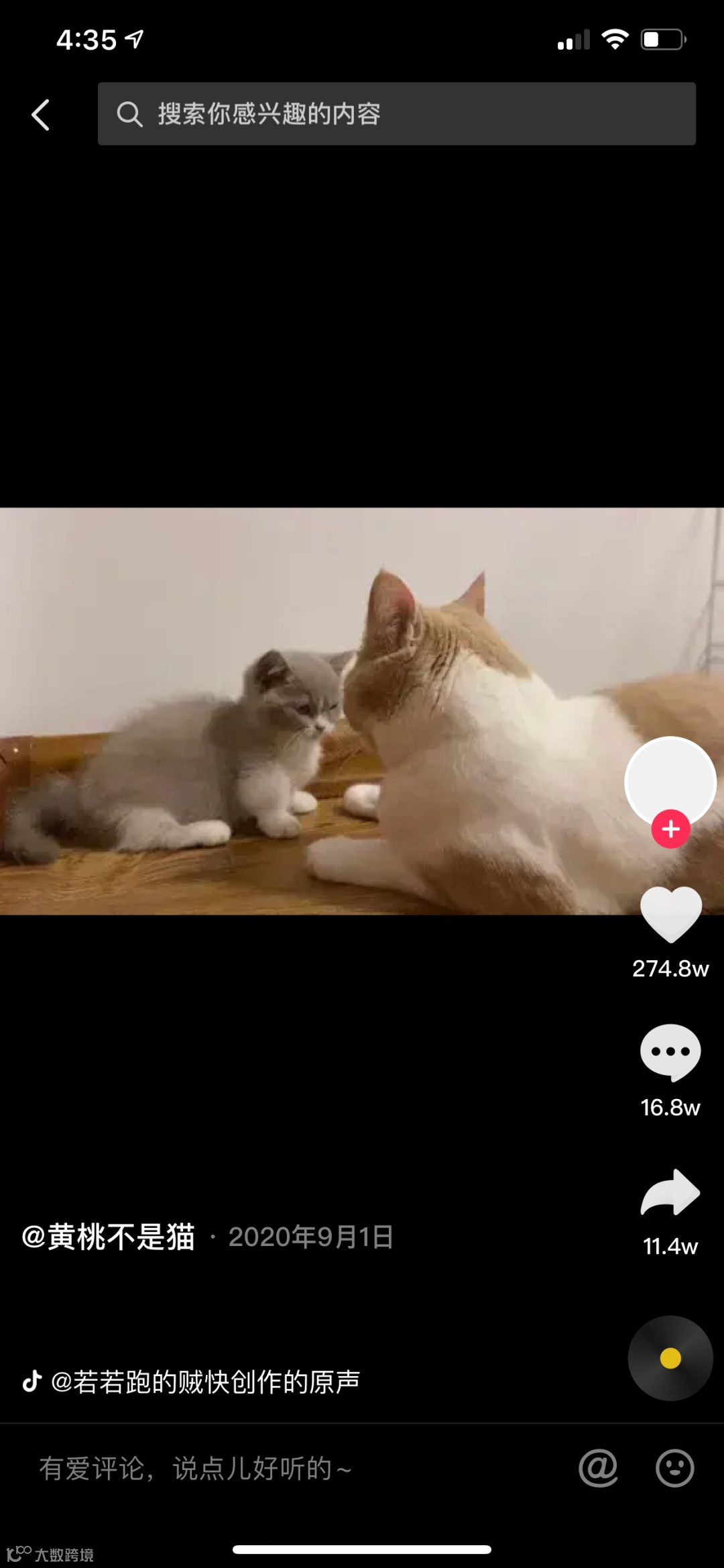 简介:黄桃不是猫自2019年2月13日正式入驻抖音,黄桃不是猫的作品大致内容以黄桃、雪梨和锤子的日常volg为主,其中,获赞数最高的视频作品为《这是一段猫咪早期对话的珍贵录像!》,达到了274.8w赞。而目前黄桃不是猫的整体获赞数达到了6091.2w,粉丝数达到了329.6w。