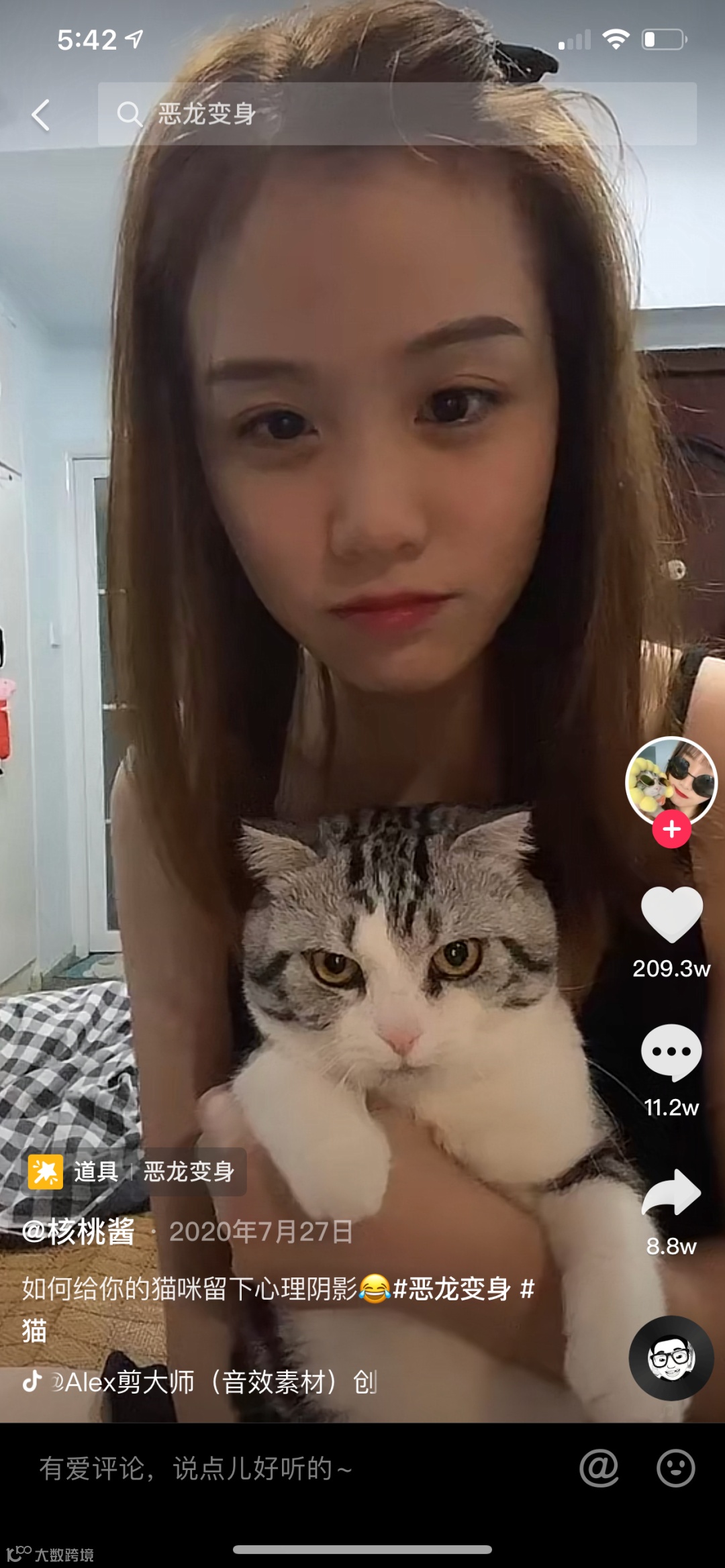简介:Amy是只猫自2020年2月22日在抖音上发布了自己的第一个作品,大致内容以Amy的日常vlog为主,其中,获赞数最高的视频作品为《是对象打呼一脚把他踹下去可他是小猫咪 我只能忍》,达到了217.6w赞。而目前Amy是只猫的整体获赞数达到了3917.8w,粉丝数达到了74.1w。