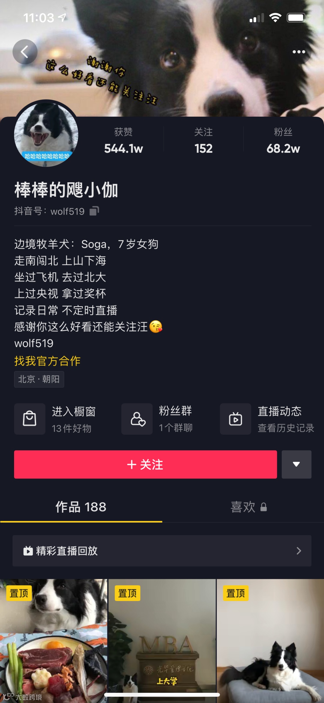 简介:北京柯基联萌自2019年9月30日在抖音上发布了自己的第一个作品,大致内容以柯基团建活动与日常vlog为主,其中,获赞数最高的视频作品为《请问对于这种谋害老板的员工如何处置?》,达到了8849赞。而目前北京柯基联萌的整体获赞数达到了25.6w,粉丝数达到了1.9w。