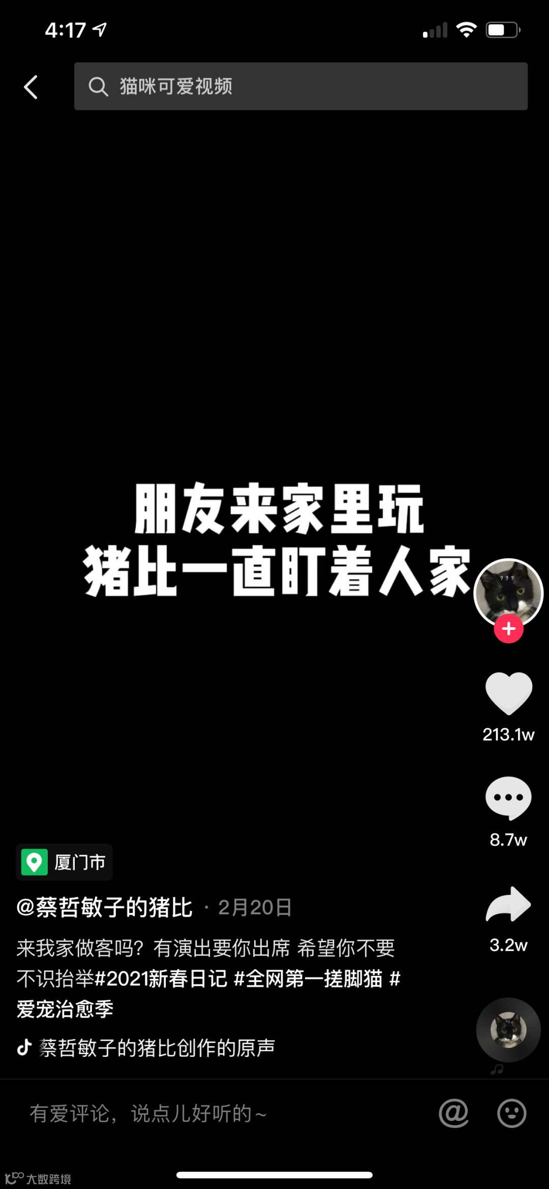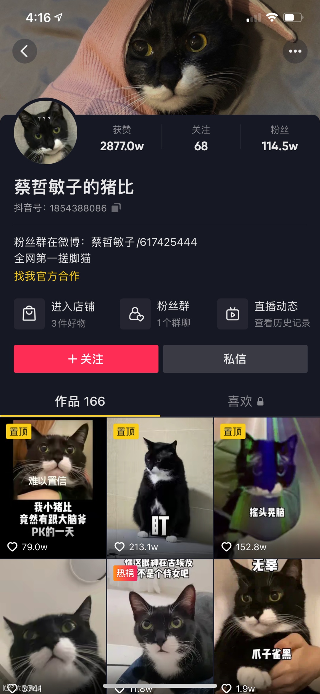 3、2021年9月13日,蔡哲敏子的猪比参与热榜话题#猫的古埃及血脉测试,并发布视频《你这眼神在古埃及怕不是个侍女吧》,获赞11.8w;