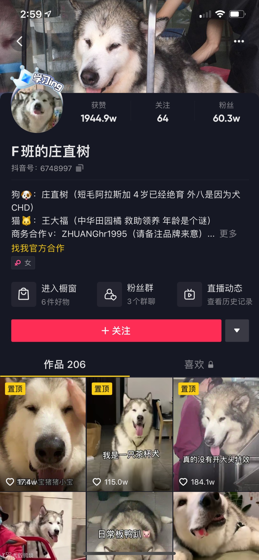 简介:F班的庄直树自2020年2月4日在抖音上发布了自己的第一个作品,大致内容以庄直树的日常vlog为主,其中,获赞数最高的视频作品为《真的没有开大头特效》,达到了184.1w赞。而目前F班的庄直树的整体获赞数达到了1944.9w,粉丝数达到了60.3w。