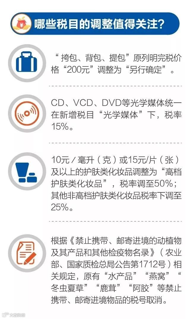 为贯彻落实党中央、国务院的决策部署,满足群众多层次消费需求,今年以来我国对药品、日用消费品等进口关税进行了下调。9月30日,国务院关税税则委员会下发了《关于调整进境物品进口税有关问题的通知》,海关总署也随之印发2018年第140号公告,对《中华人民共和国进境物品归类表》及《中华人民共和国进境物品完税价格表》(以下简称两表)进行相应调整,归类原则和完税价格确定原则不变。