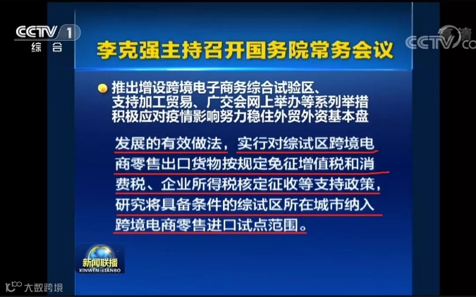 会议指出,近年来我国跨境电商进出口规模持续快速增长,成为外贸发展新亮点。当前传统外贸受到疫情较大冲击,必须更大发挥跨境电商独特优势,以新业态助力外贸克难前行。会议决定,在已设立59个跨境电商综合试验区基础上,再新设46个跨境电商综合试验区。推广促进跨境电商发展的有效做法,同时实行对综试区内跨境电商零售出口货物按规定免征增值税和消费税、企业所得税核定征收等支持政策,研究将具备条件的综试区所在城市纳入跨境电商零售进口试点范围,支持企业共建共享海外仓。
