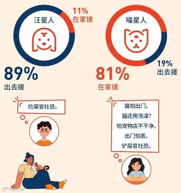89%的养狗用户愿意外出洗护,而养猫用户的占比仅19%