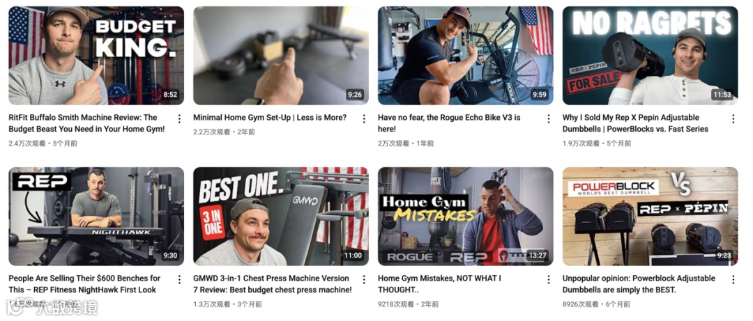 随着疫情推动居家健身需求井喷,RitFit选择将重点投入北美市场,并将推广重任交由一位精准垂类YouTube内容创作者——Maguire’s Gym。尽管Maguire的YouTube账号只有1870位订阅者,并非传统意义上的KOL矩阵成员,而是由一位真正热爱力量训练、深耕家庭健身的个体Mark Maguire所主理。