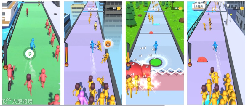 通过将热门IP、流行元素融入跑酷的经典玩法,针对热门关键词进行投放和推广,在IP庞大受众人群的加持下,游戏的下载量便有所保障。代表作品有融入宝可梦元素的《Monster Squad Rush》,结合篮球元素以及NBA球星人物形象的《Cross'em All》,乃至收录各大名牌,反映炒鞋热潮的《Shoes Evolution 3D》。