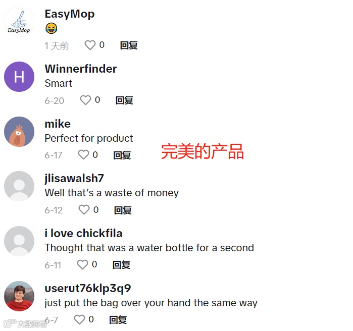 这条视频与@petonline5的视频内容一致,通过不同账号发布相似产品,吸引到更多的用户,从而获得订单。在视频的评论区,有网友表示外出遛狗的大小便问题终于有了解决办法。
