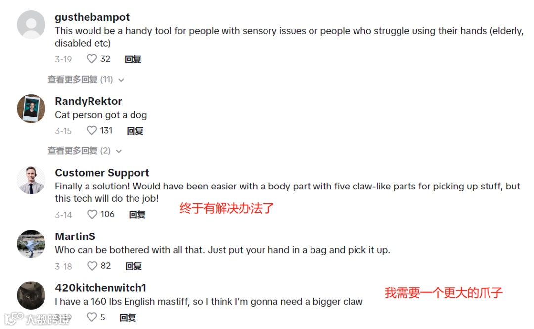 除此之外,也有用户提出了新需求,就是需要一个更大的抓夹。跨境卖家可以通过这个新需求升级出新的产品,也是一个不错的选择。