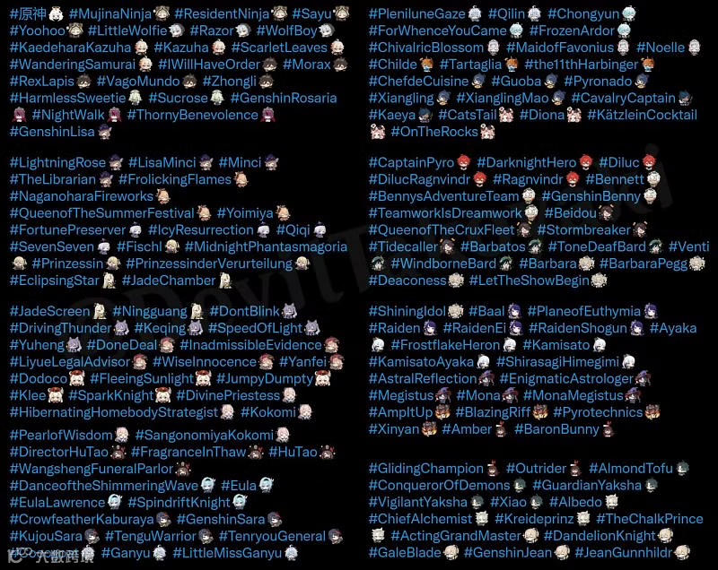 所有可用的原神Hashflag(图片来自 DevilTakoyaki)