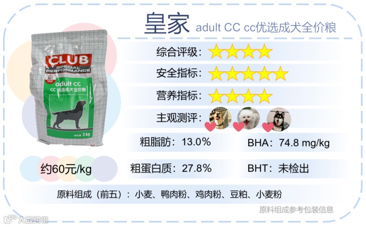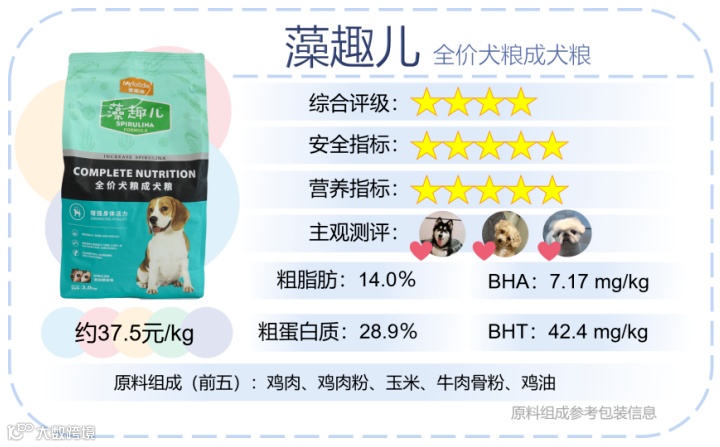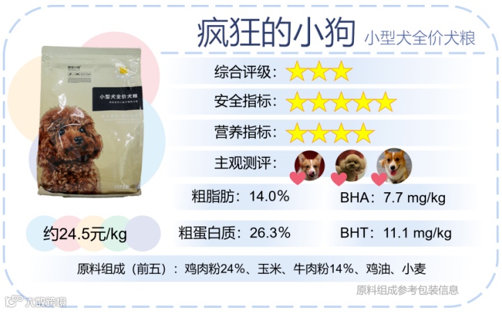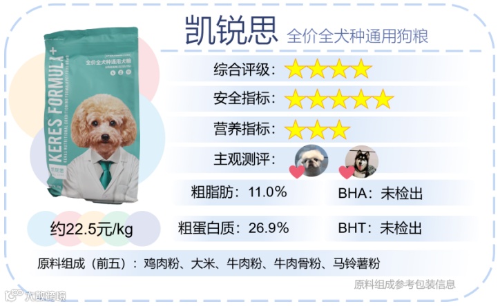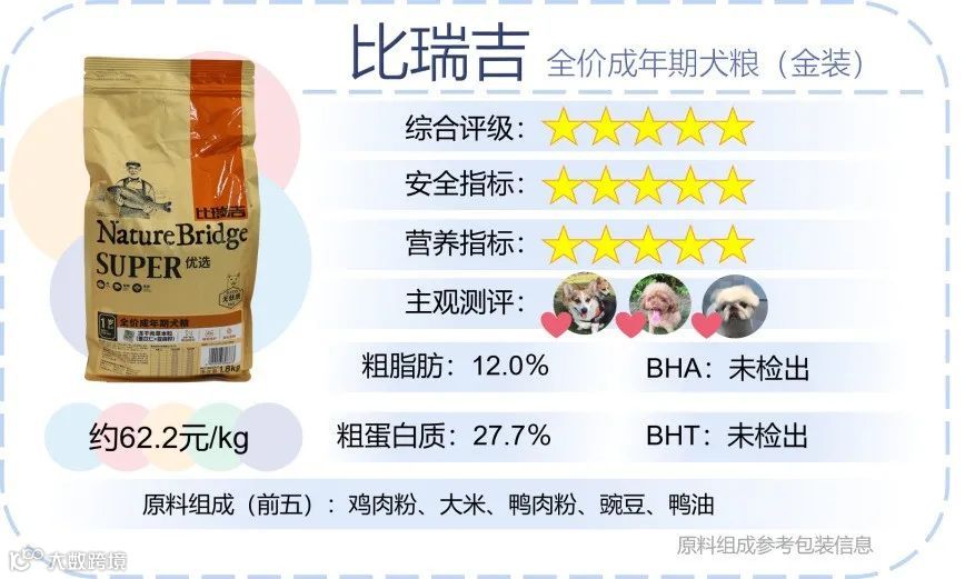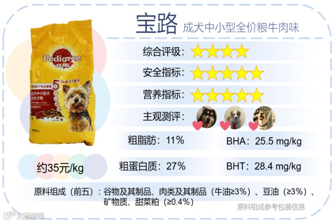 四款狗粮未检出BHA与BHT,三款狗粮获五星好评