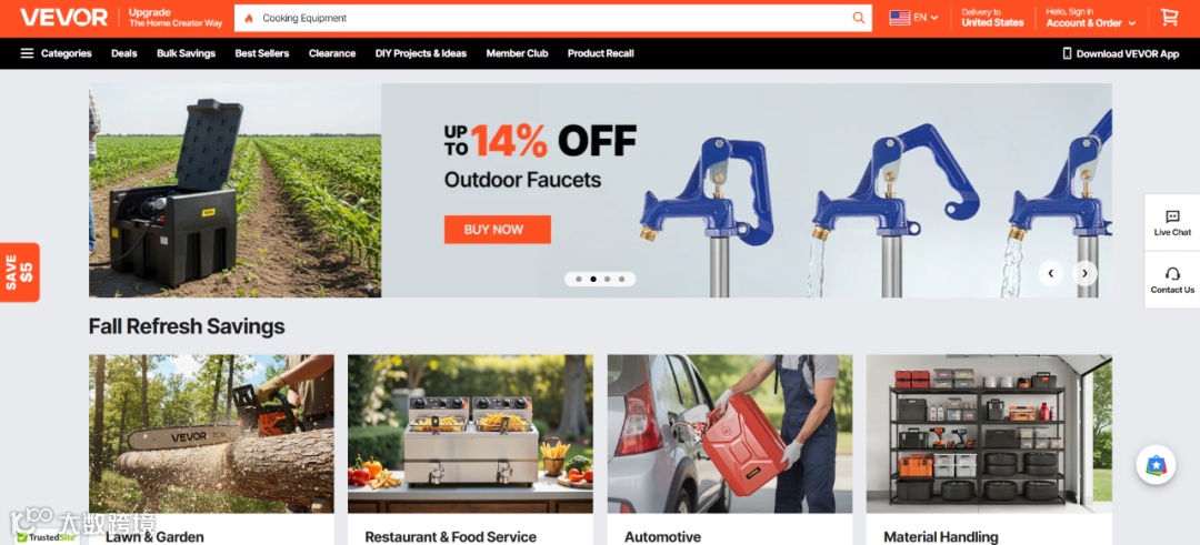 VEVOR独立站不仅是销售渠道,更承担着“用户决策中枢”的功能。网站采用精细化分类,缩短用户决策时间。