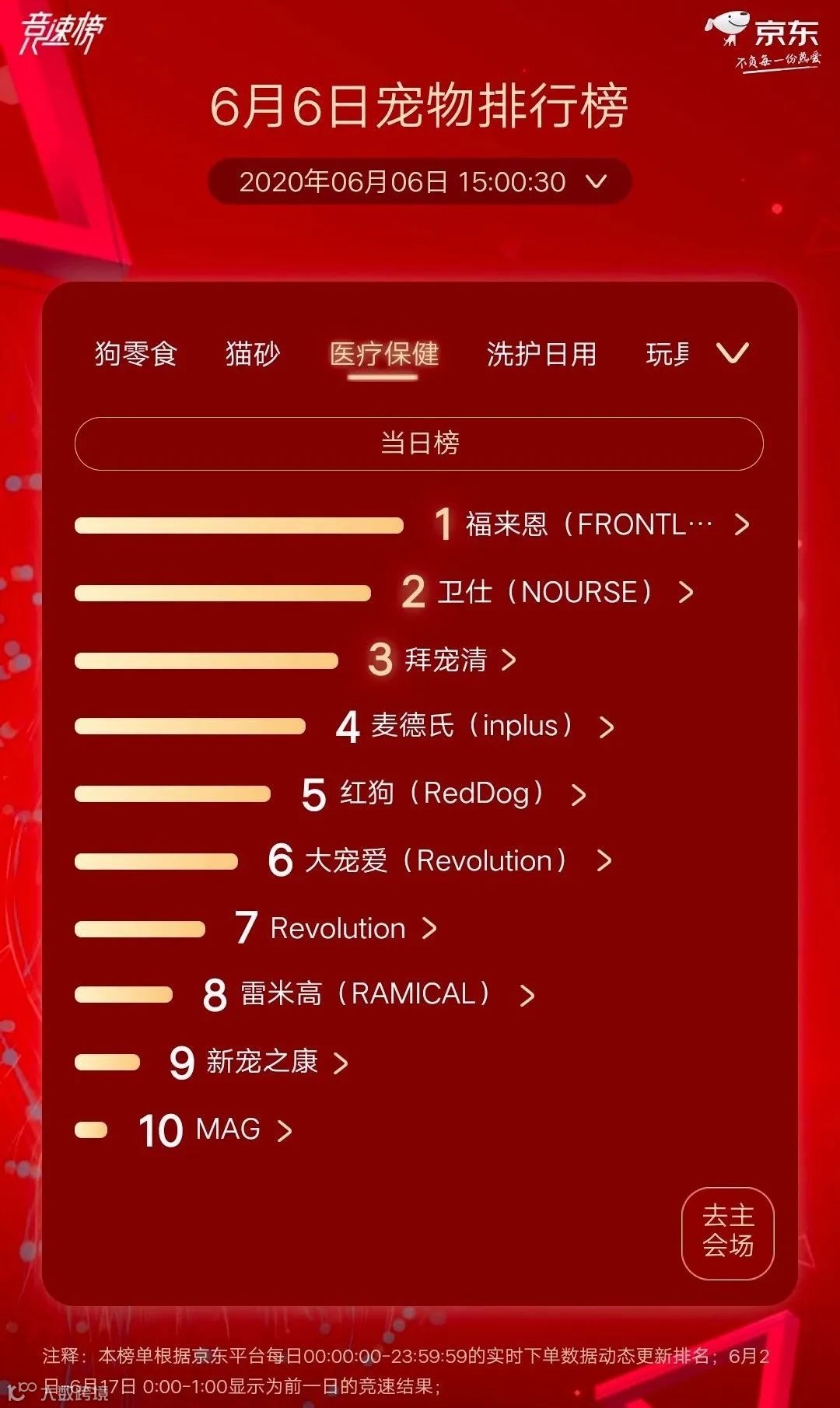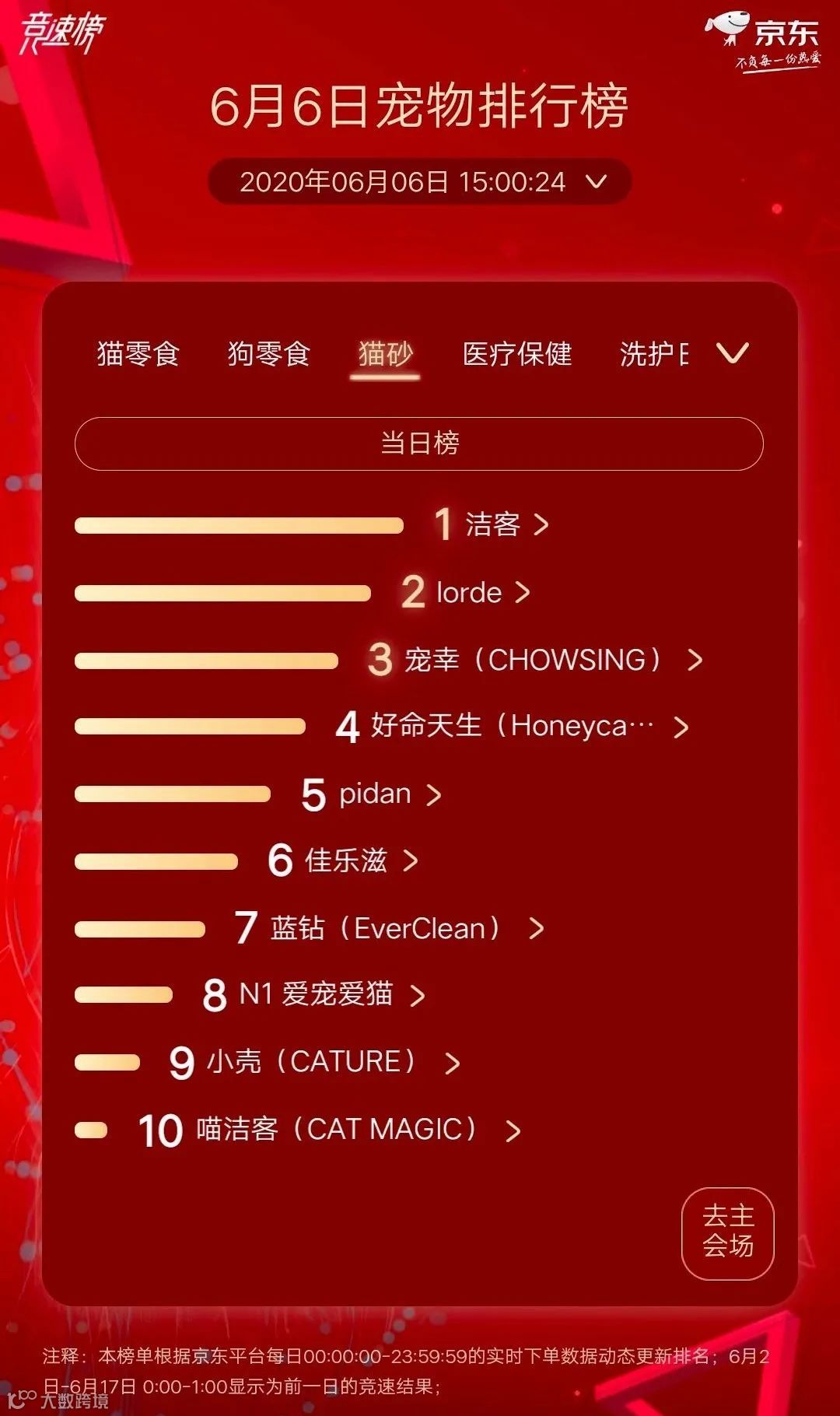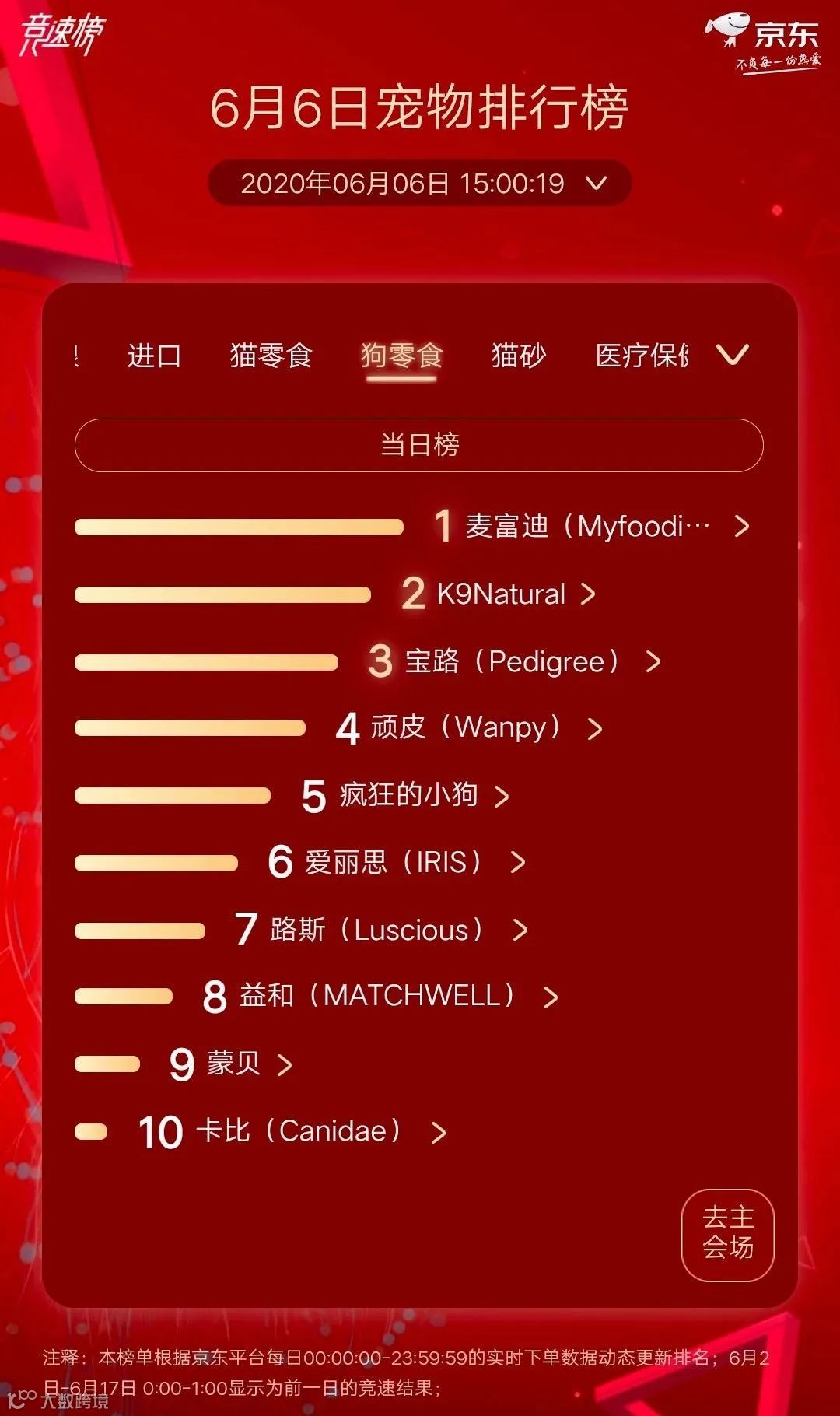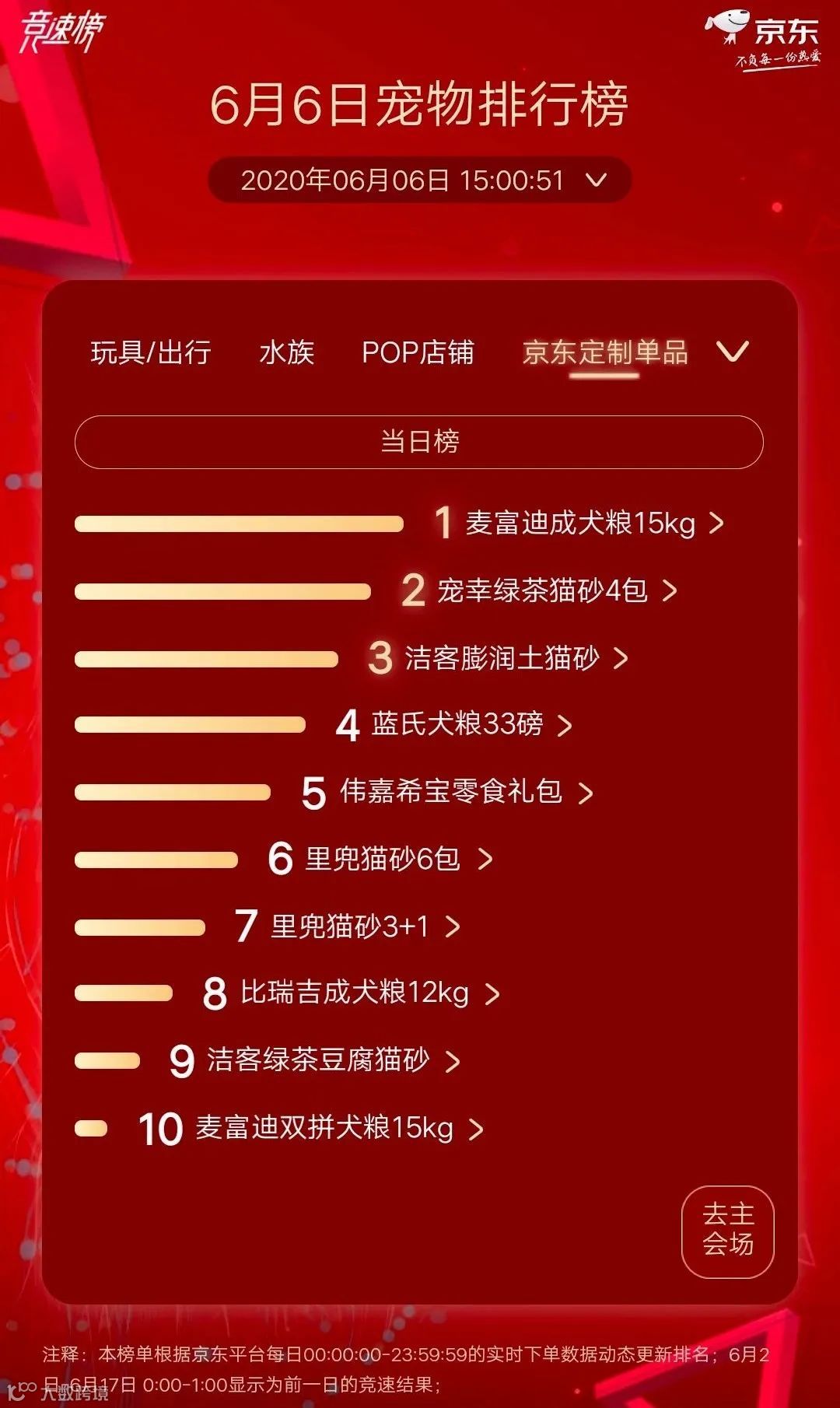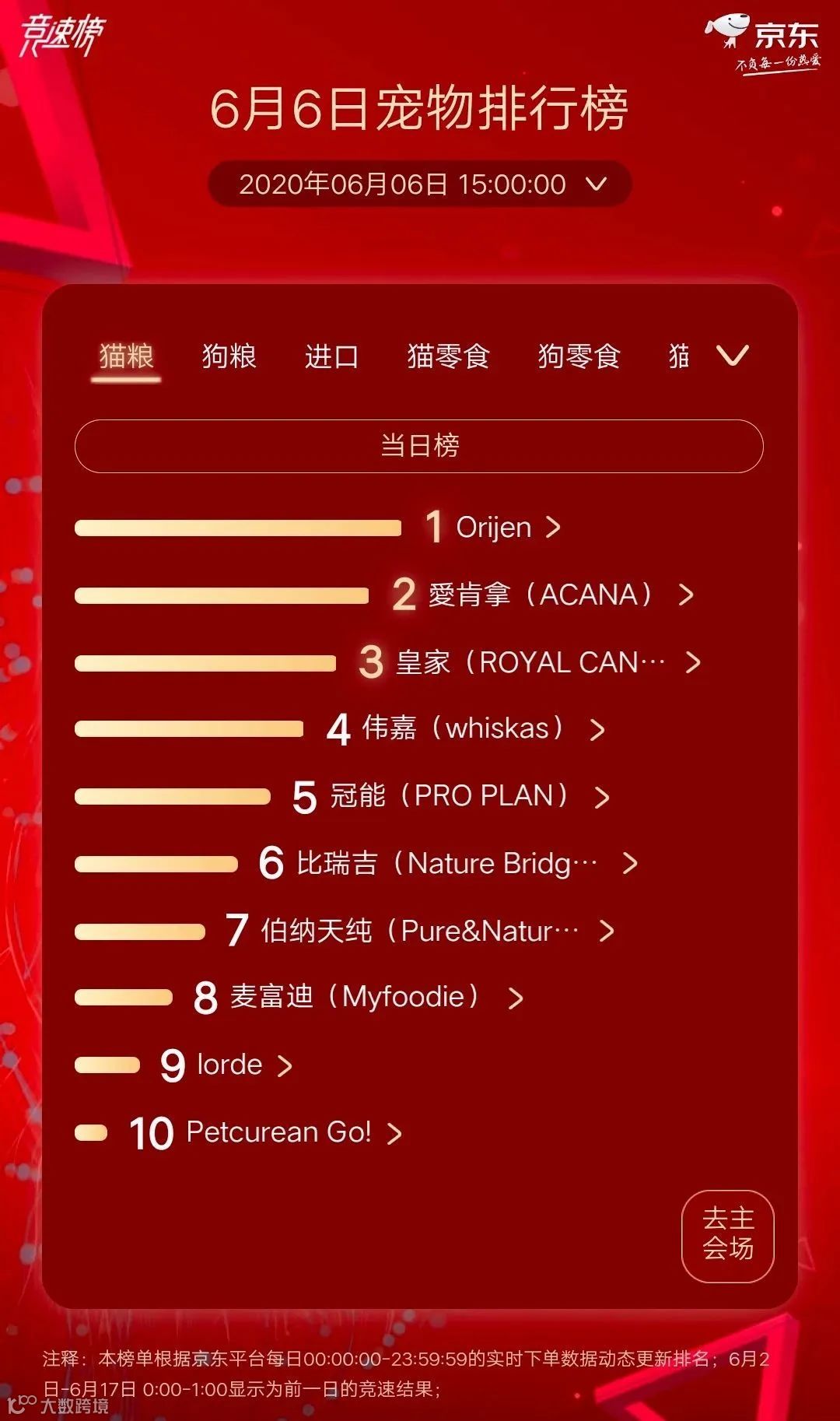 宠物行业观察今天小编为大家带来新一期的京东618宠物排行榜,给大家梳理一下6月6日的京东宠物排行榜。(PS:数据截止6月6日15时)
